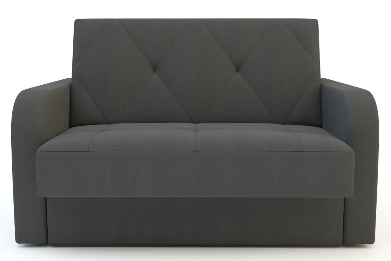 Grafitowa sofa to uniwersalna propozycja do większości wnętrz. Ozdobne przeszycia na poduchach dodają jej eleganckiego charakteru.