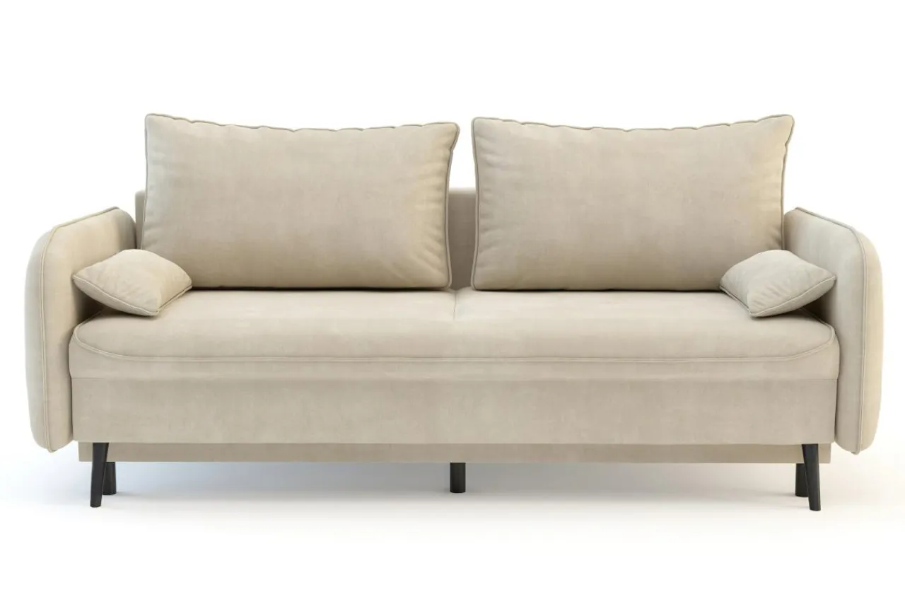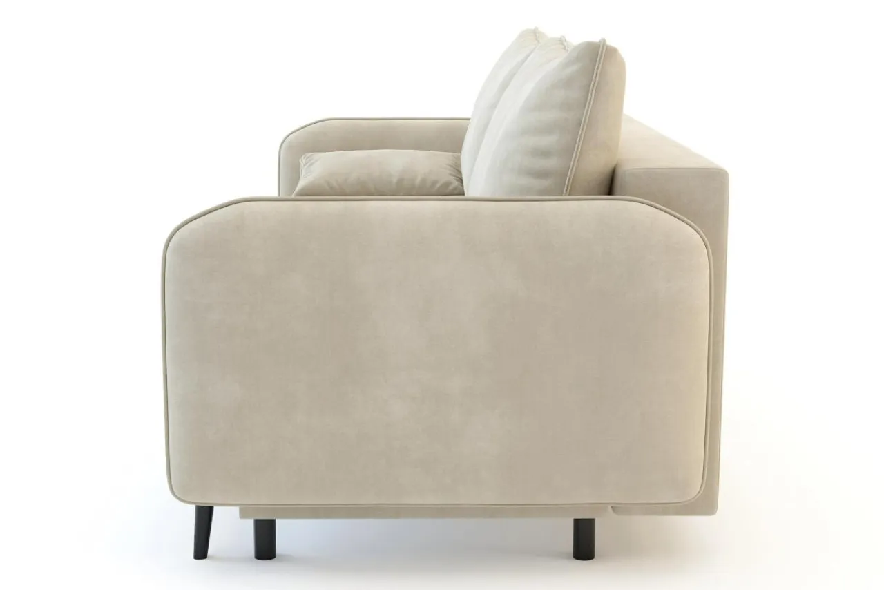 Sofa utrzymana jest w nowoczesnym stylu. Smukła linia w połączeniu z miękką, welurową tkaniną sprawiają, że możesz wkomponować ją w różne aranżacje wnętrz.