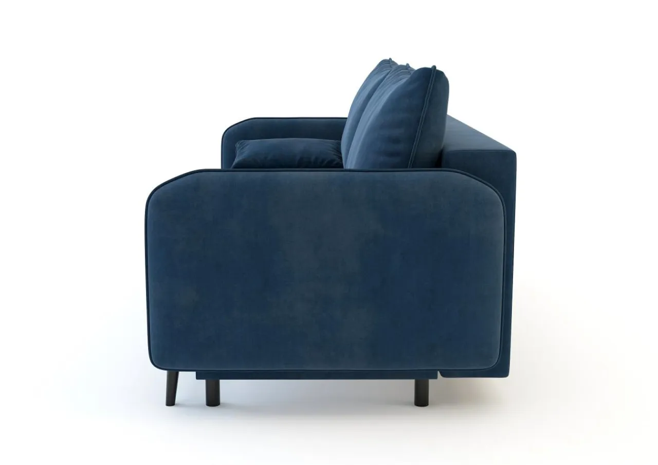 Sofa utrzymana jest w nowoczesnym stylu. Smukła linia w połączeniu z miękką, welurową tkaniną sprawiają, że możesz wkomponować ją w różne aranżacje wnętrz.