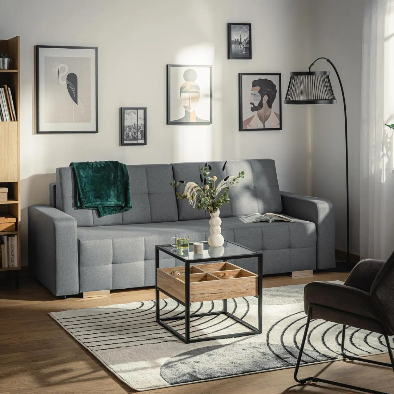 - Zwarta tkanina w szarym kolorze pozwoli Ci na dowolność podczas aranżacji salonu.