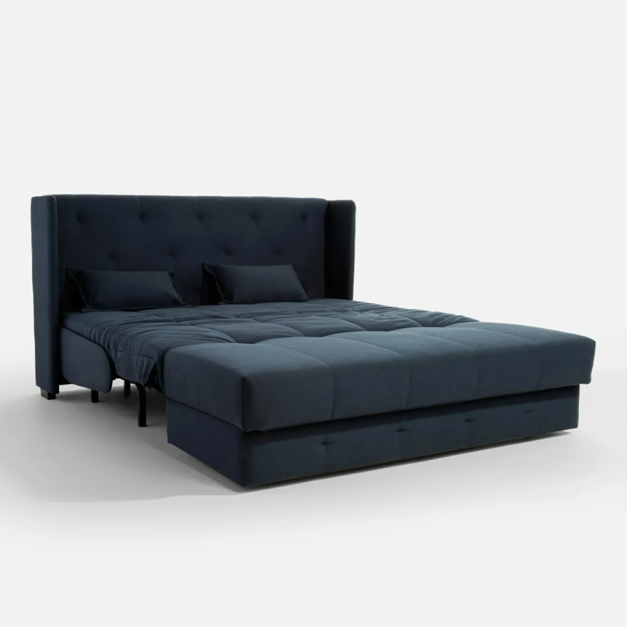 Proponujesz gościom nocleg, więc rozkładasz sofę DERBY LITE. Waszym oczom ukazuje się to imponujące wezgłowie. To tylko rozłożona sofa, ale dla gości wygląda jak łóżko w eleganckiej sypialni.