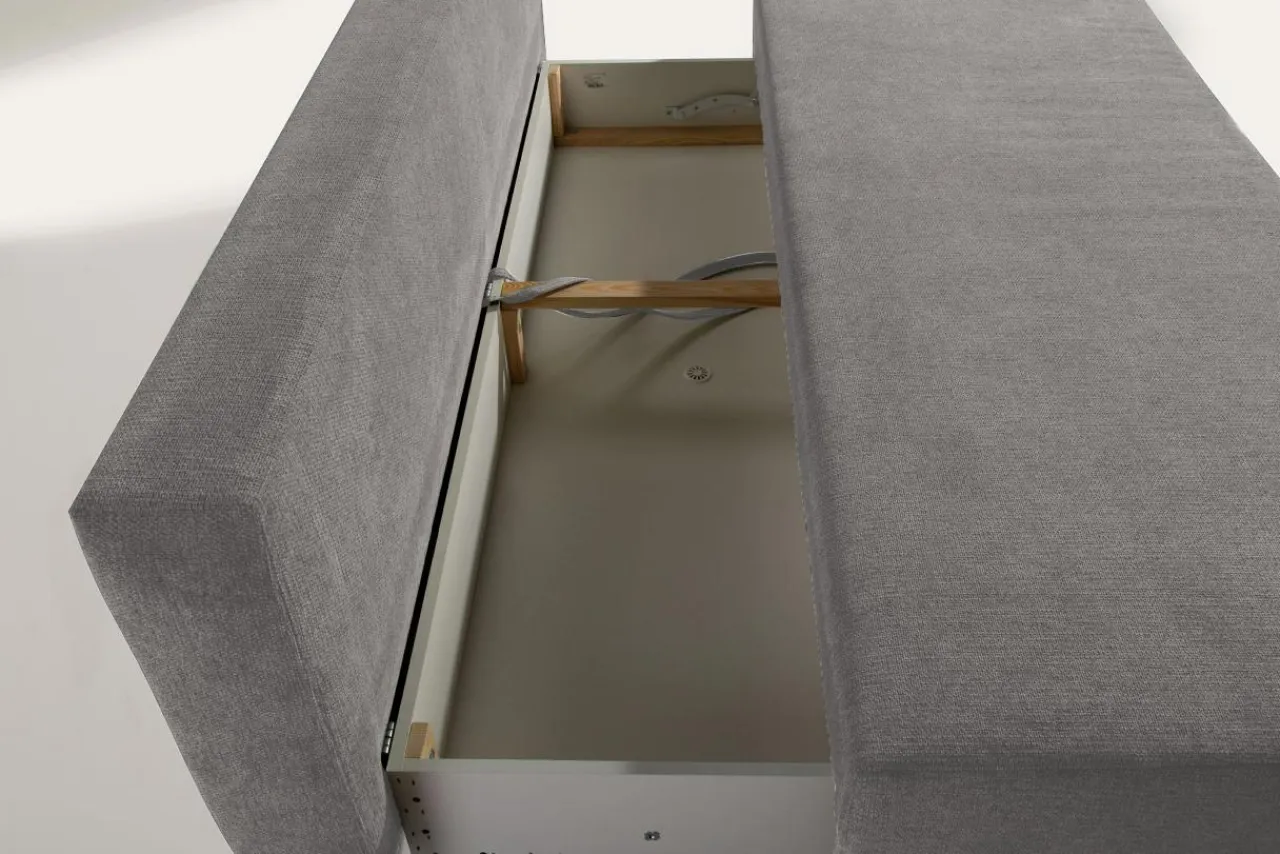 - W pojemniku pod siedziskiem przechowasz pościel i inne domowe tekstylia. Dostęp do niego uzyskasz podczas rozkładania sofy.