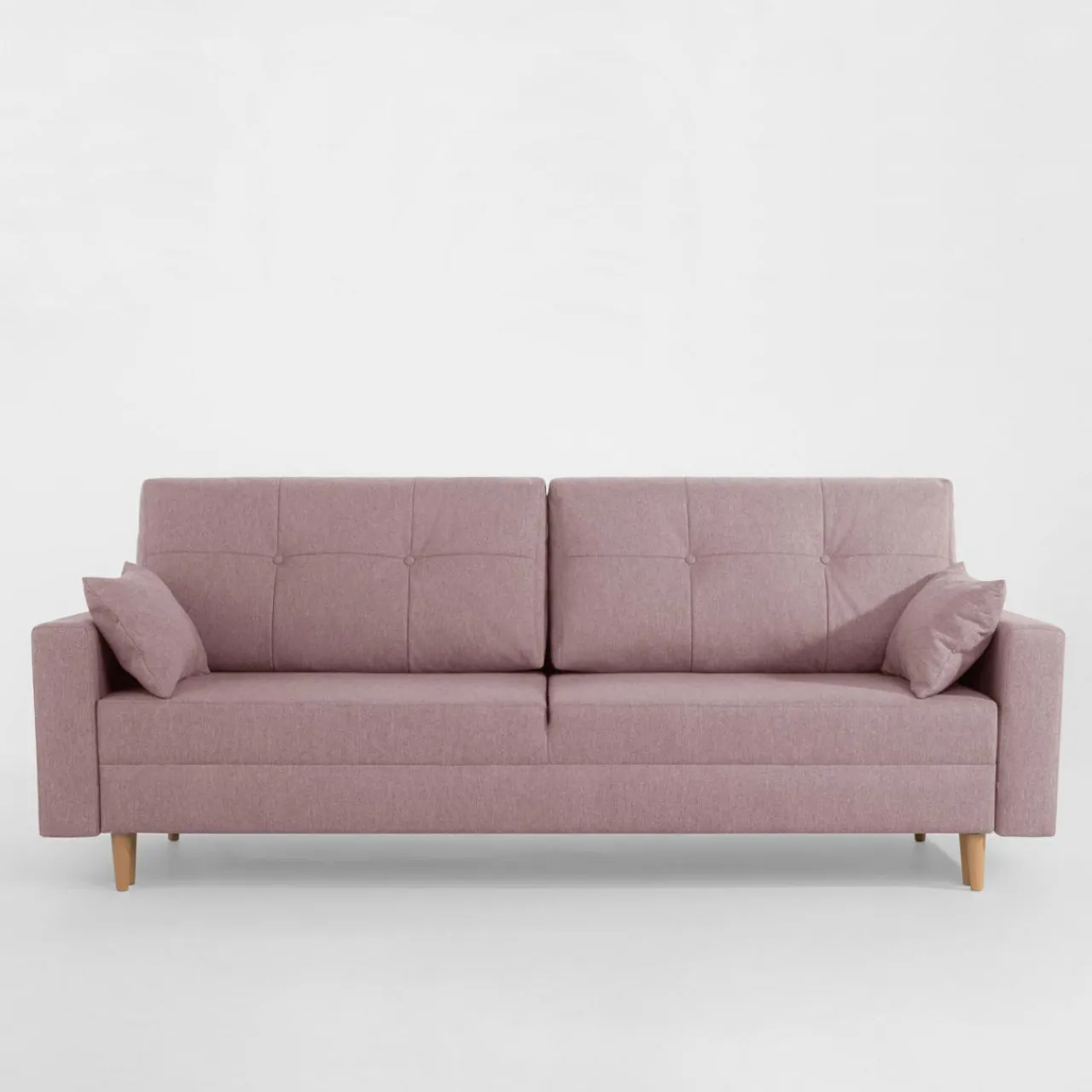 - Nóżki z ciemnego drewna bukowego podkreślają elegancki wygląd sofy i będą pasować do mebli w ciemnym odcieniu drewna.