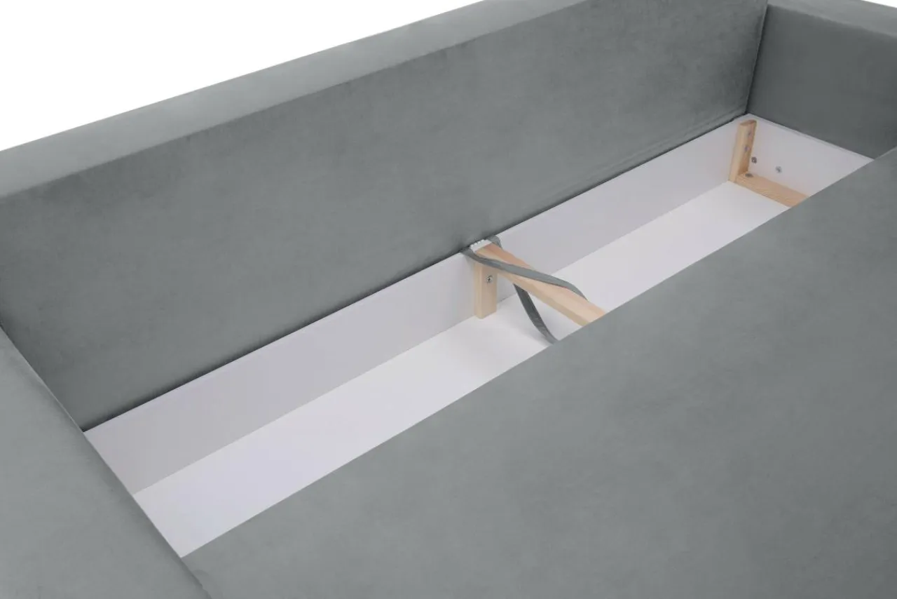 - Pod siedziskiem umieszczony jest pojemnik, dzięki któremu bez problemu wyjmiesz koc lub pościel podczas rozkładania sofy.