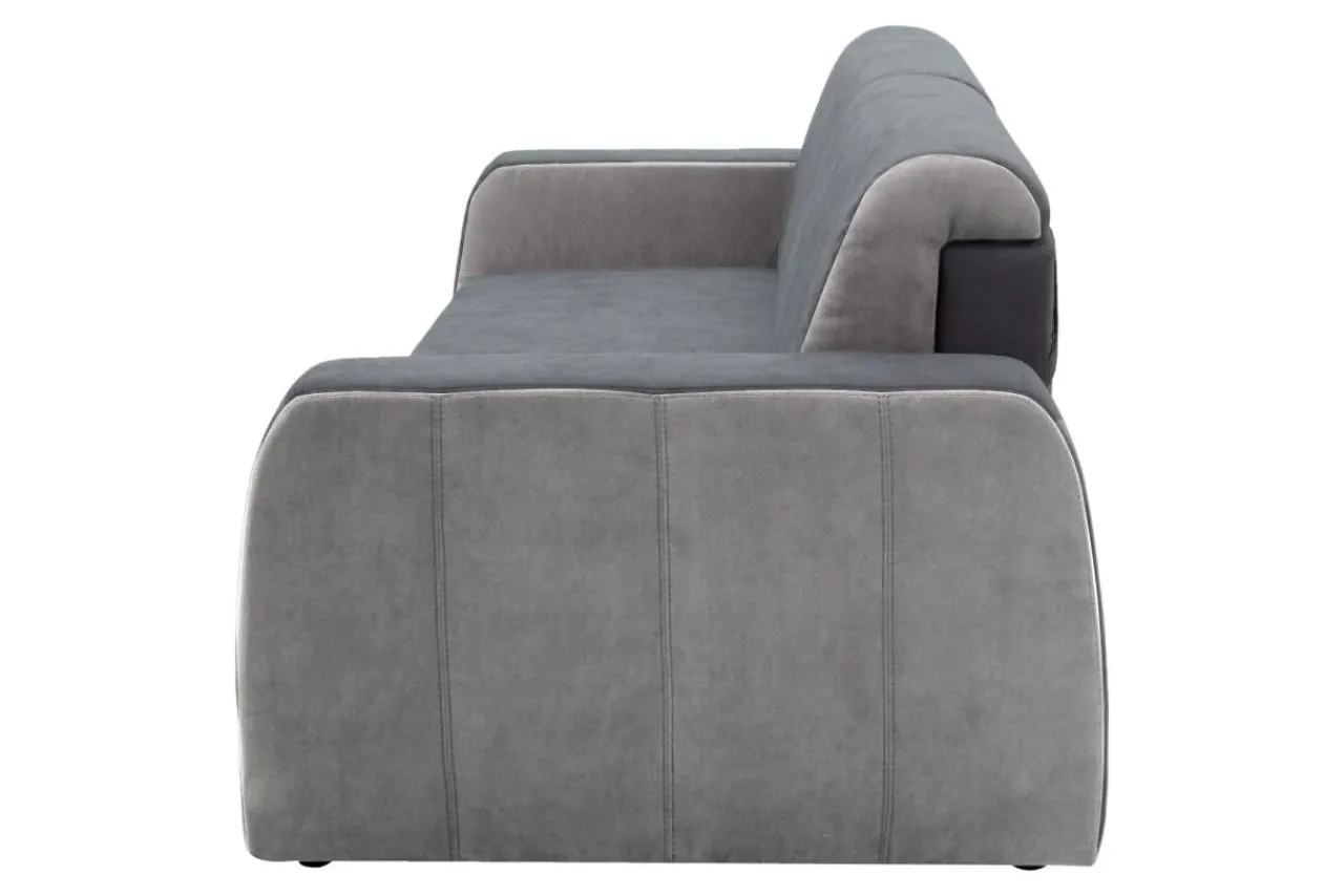 - Sofa jest wykończona 2 tkaninami: ENJOY i MILANO. Obie są miękkie i przyjemne w dotyku oraz posiadają drobną strukturę, delikatnie wyczuwalną pod palcami.