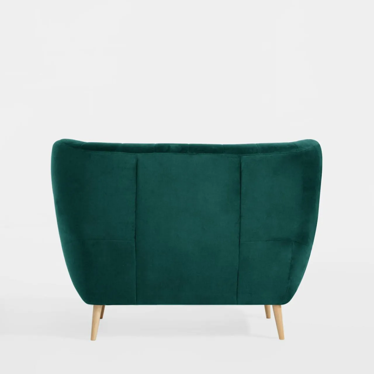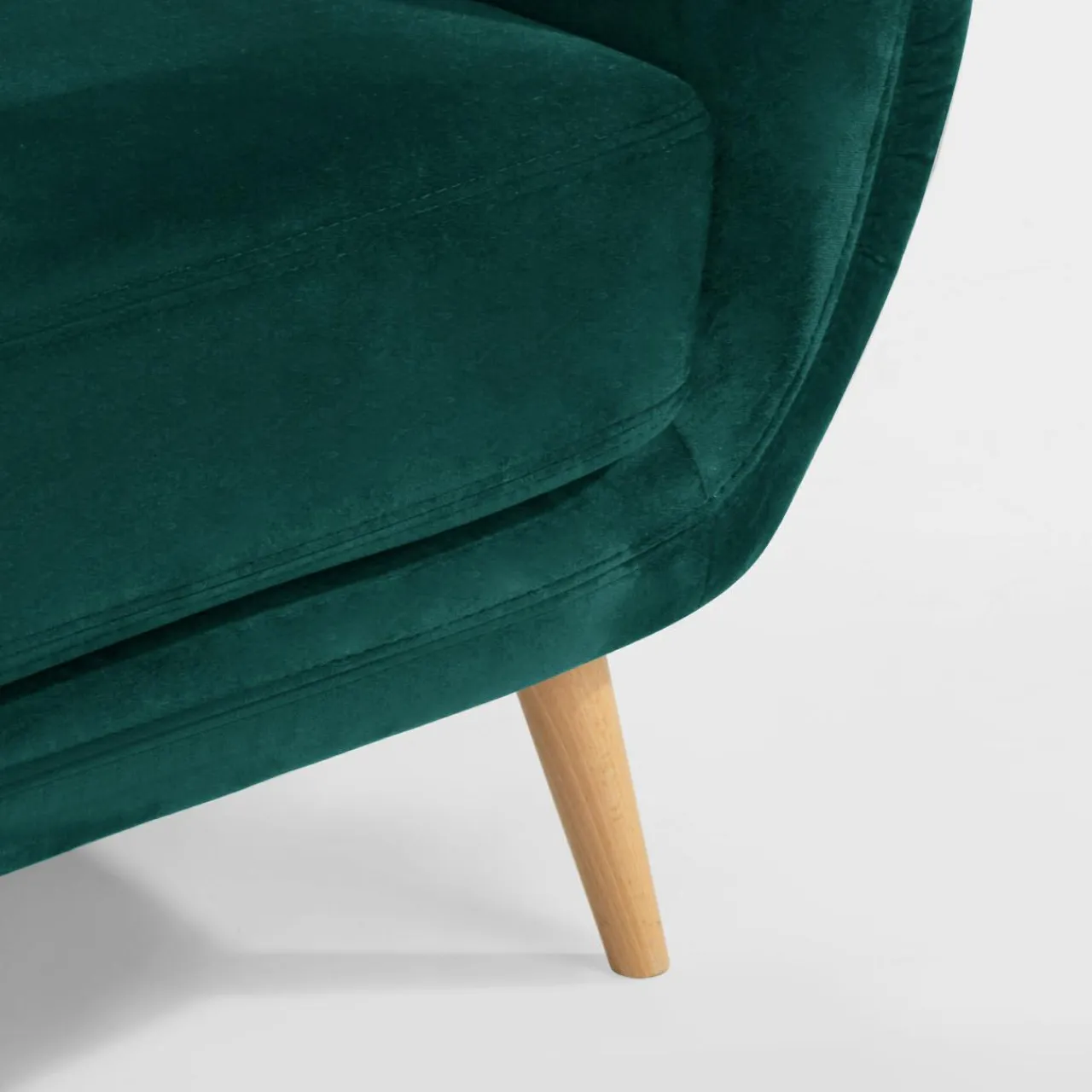 Sofa KELSO pokryta jest szlachetną, przyjemną w dotyku tkaniną MONOLITH – materiałem typu welwet, dwutonowym o intensywnym odcieniu ciemnej zieleni. Jej dodatkową zaletą jest zwiększona ochrona przed tworzeniem się plam oraz przenikaniem cieczy.