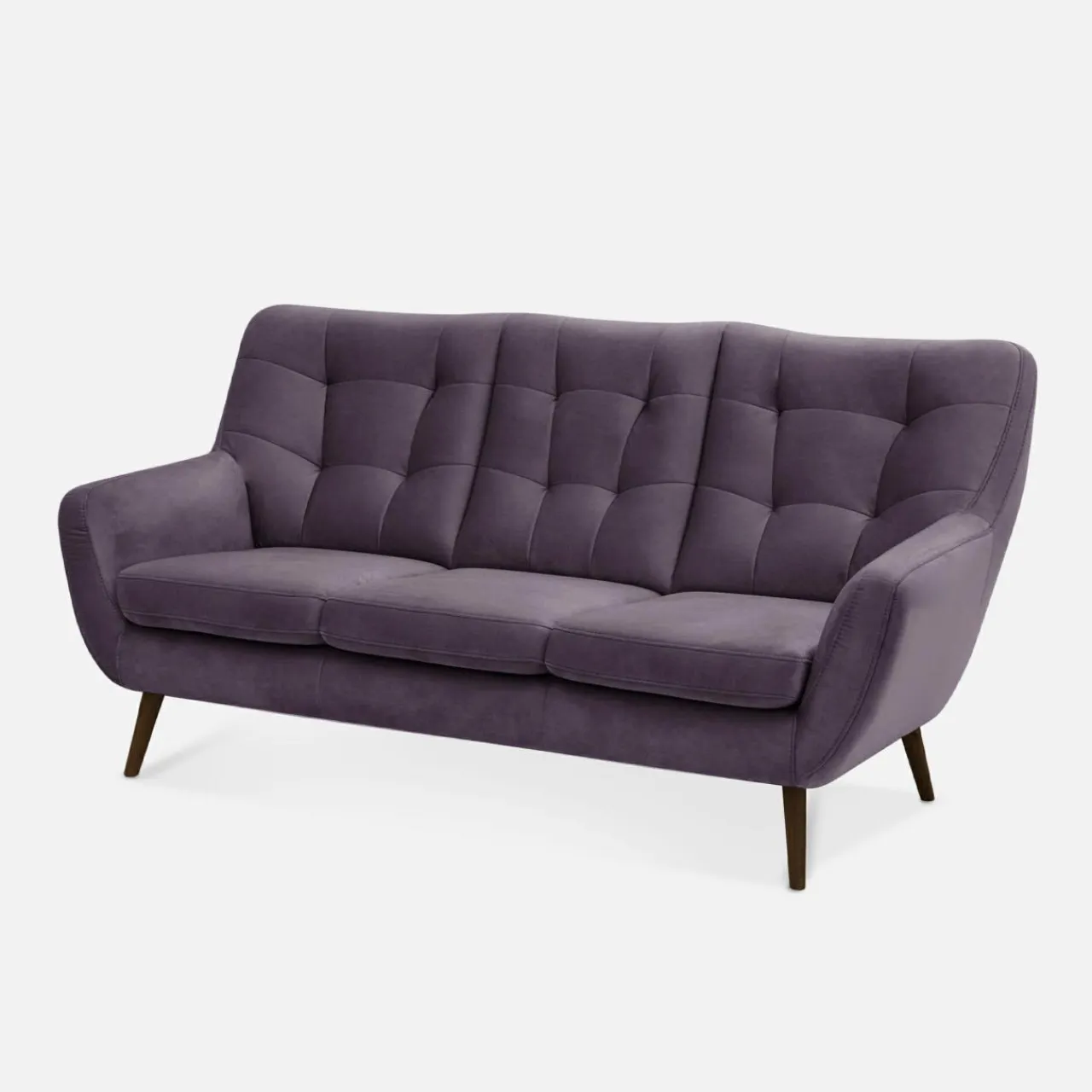 Sofa posiada unikatowy kolor: z pozoru brązowy pod wpływem światła uwypukla fioletowy odcień.