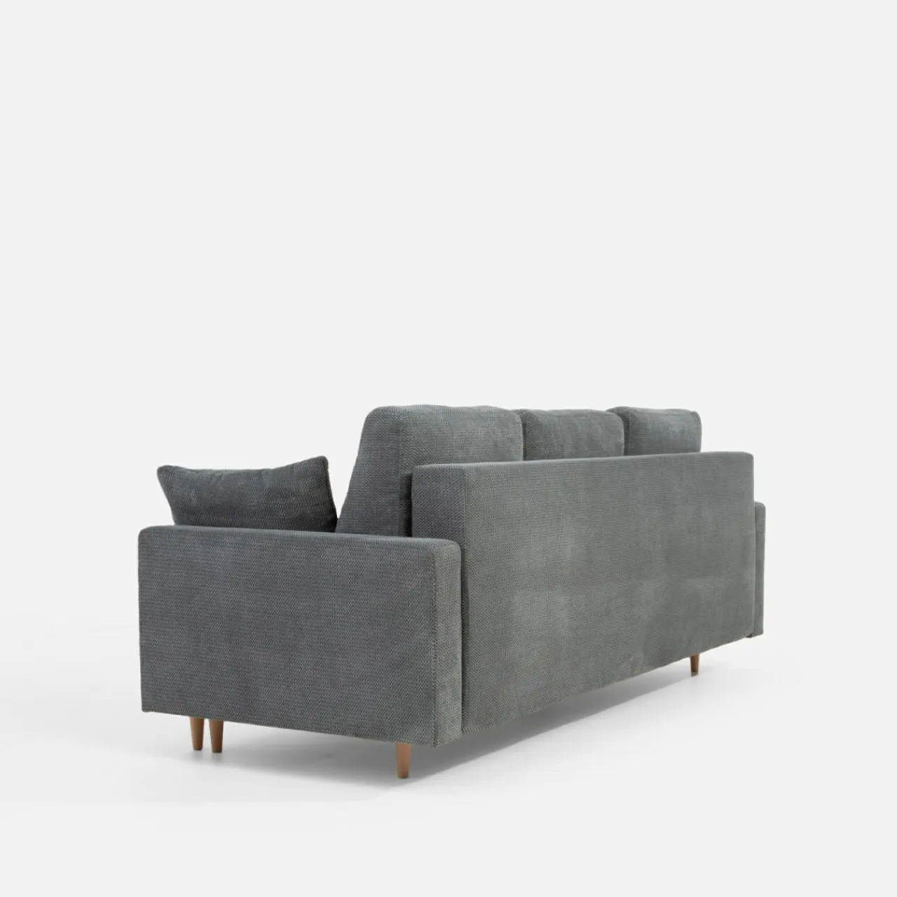 Cenisz sobie domowe ciepło? Połączenie szarości i jasnego drewna sprawi, że sofa AURA dopełni przytulne, skandynawskie wnętrze.