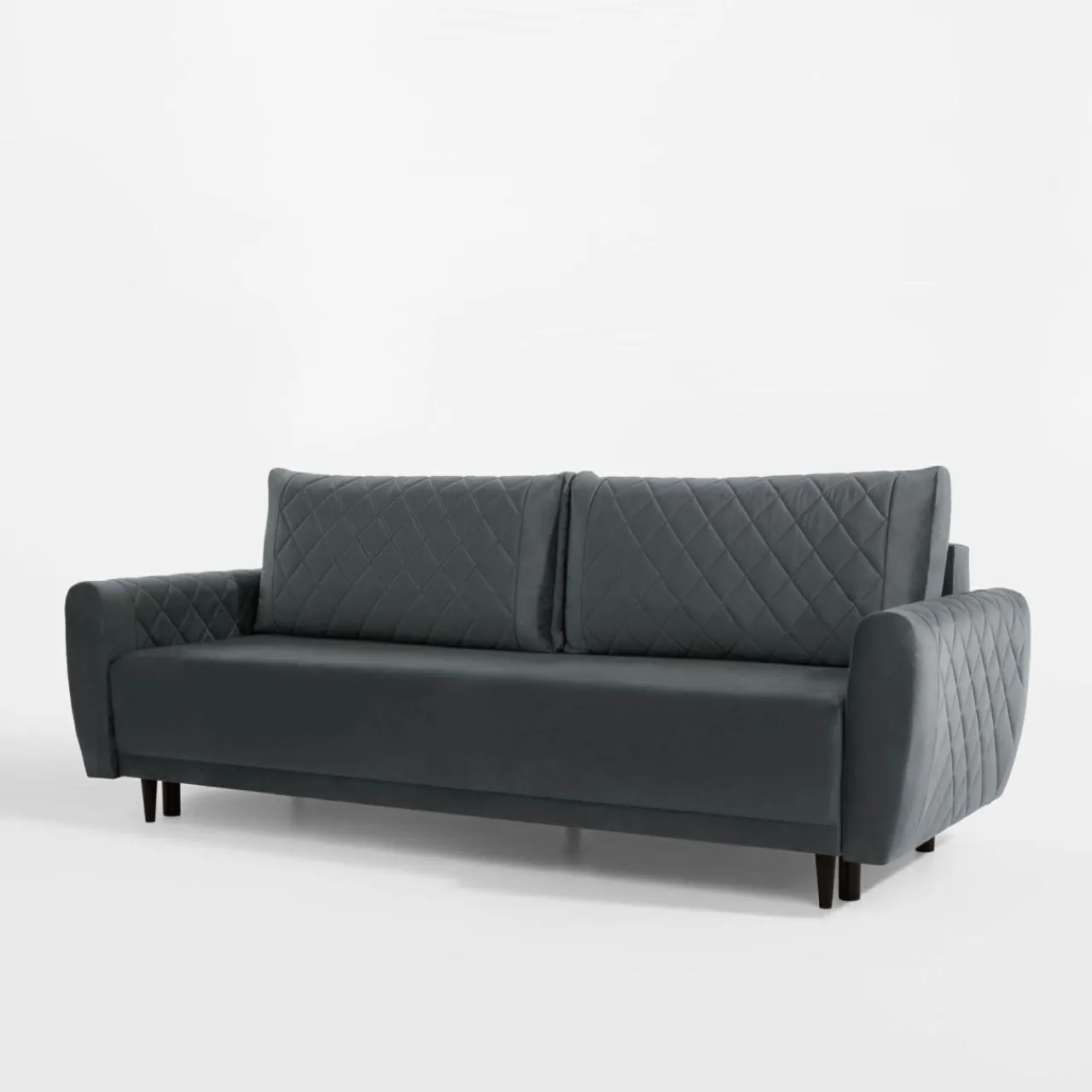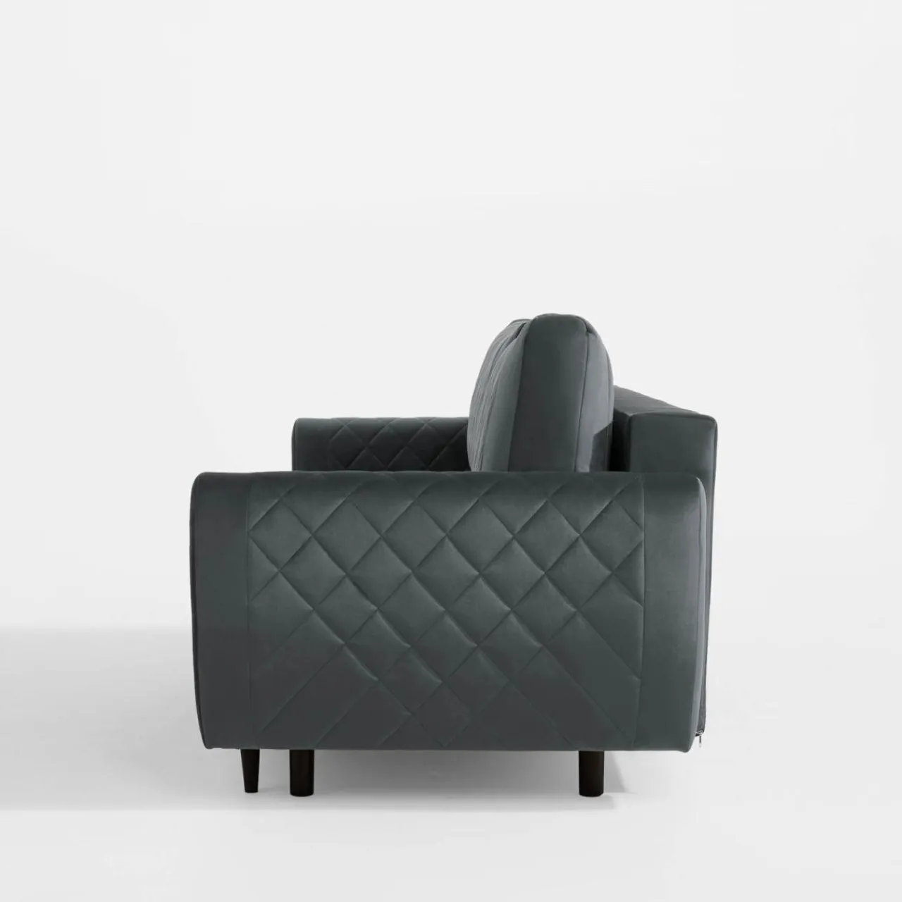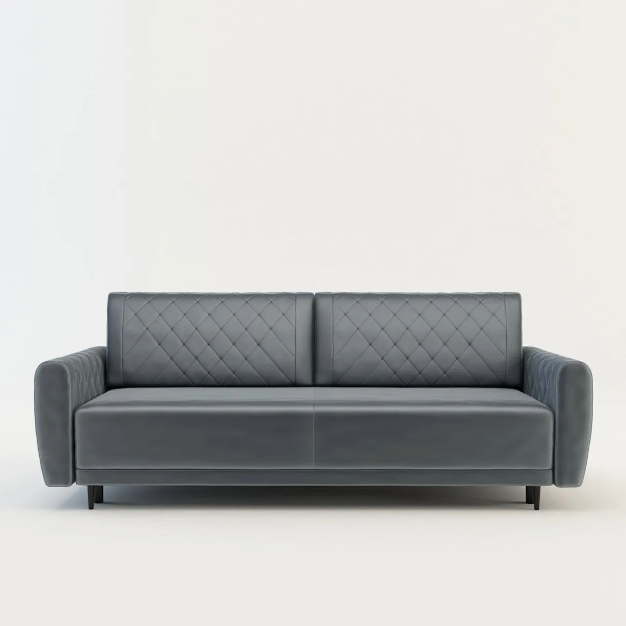 Cenisz sobie subtelną elegancję? Welurowa tkanina i ozdobne przeszycia sofy ROMA dopełnią salon urządzony w stylu glamour.