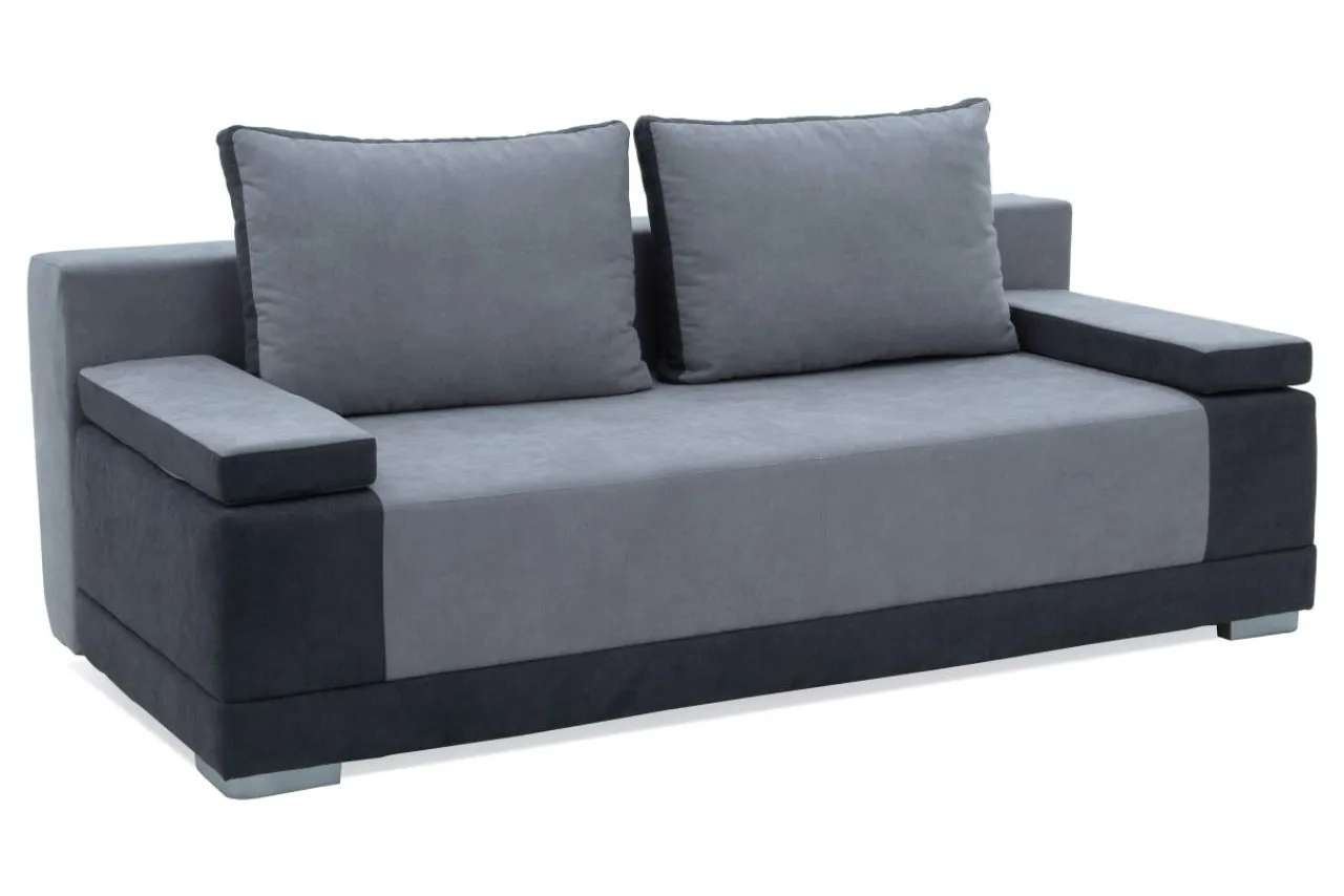 Dwukolorowa sofa w jasnym i ciemnym odcieniu szarości zwiększa możliwości aranżacyjne i sprawia, że mebel prezentuje się znacznie ciekawiej niż w jednolitym kolorze. A jeśli odwiedzą nas goście możemy wykorzystać wbudowaną funkcję spania z mechanizmem ułatwiającym rozkładanie i pojemnikiem znajdującym się pod siedziskiem.
