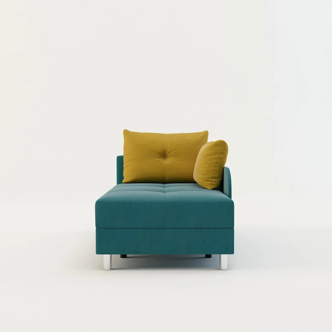 - Potrzebujesz dodatkowego miejsca do spania? Pociągnij za krótszy bok i opuść oparcie, by w prosty sposób przekształcić sofę w przestrzeń do spania.