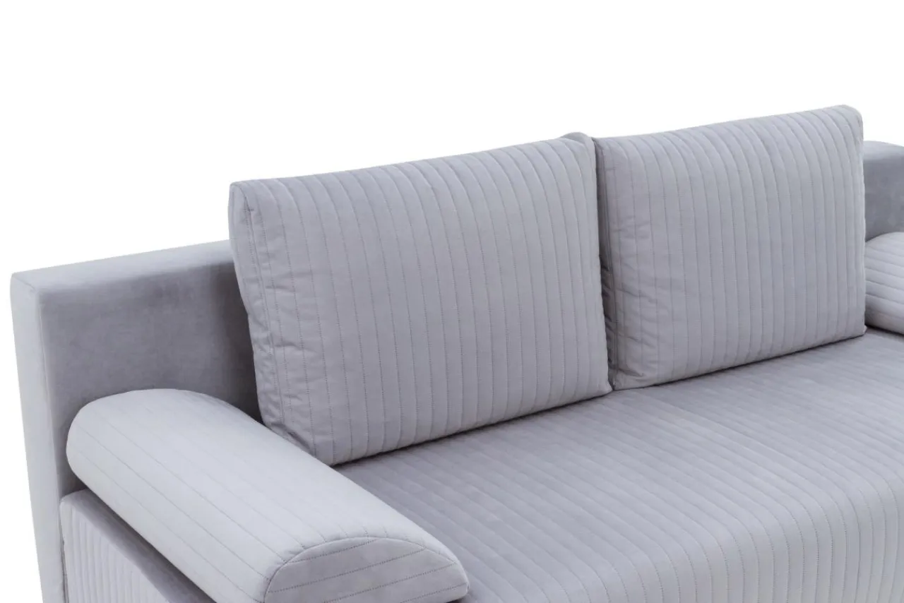 - Ozdobne przeszycia na tkaninie sofy wyróżniają ją estetycznie i podkreślają jej dyskretną elegancję;