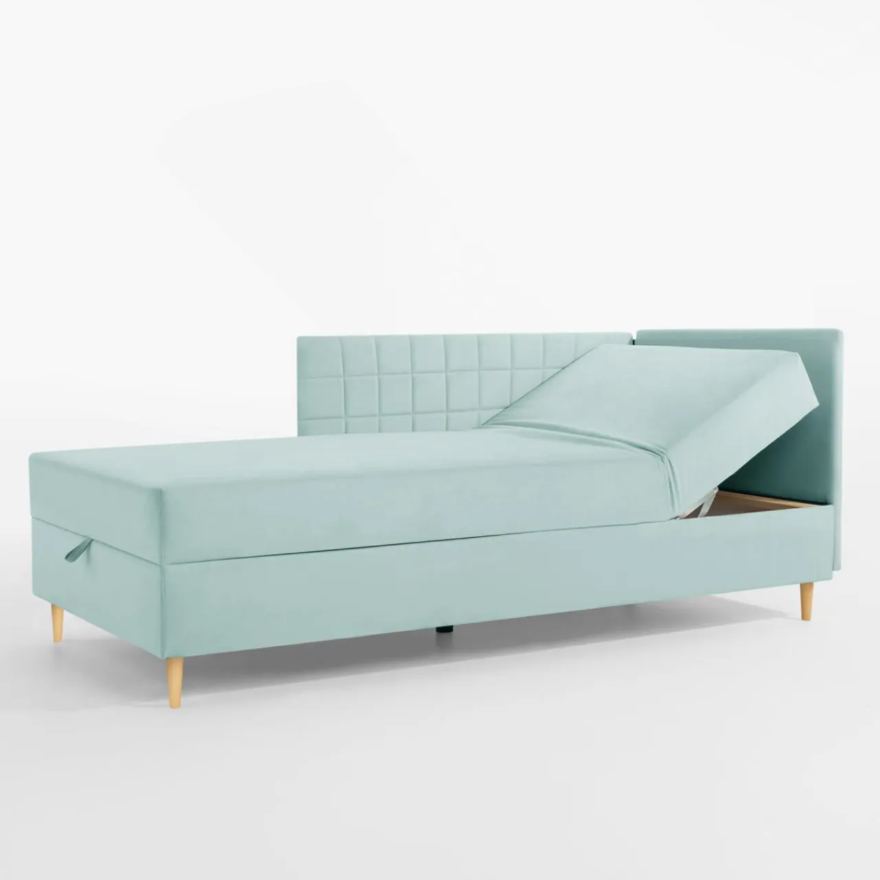 - Miękki welur w miętowym odcieniu wpisze się w wystrój pokoju młodzieżowego.