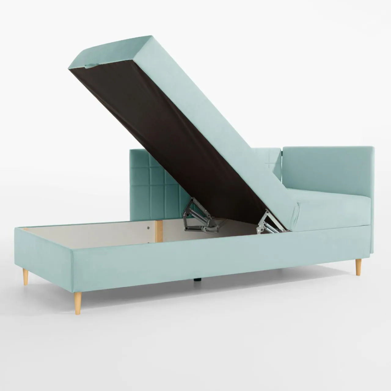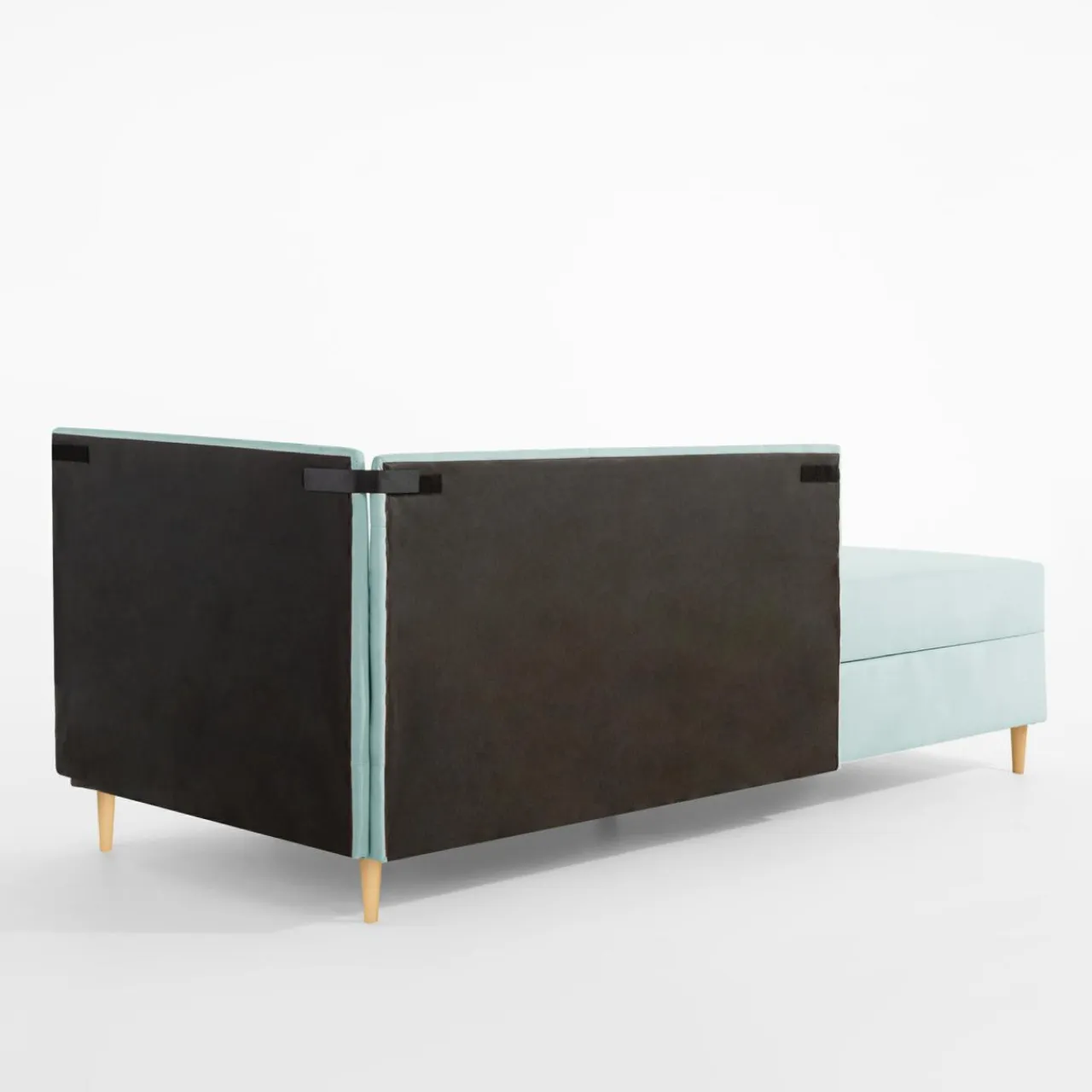 - Nóżki mają 12 cm wysokości, dzięki czemu pod tapczan jest w stanie wjechać robot sprzątający.