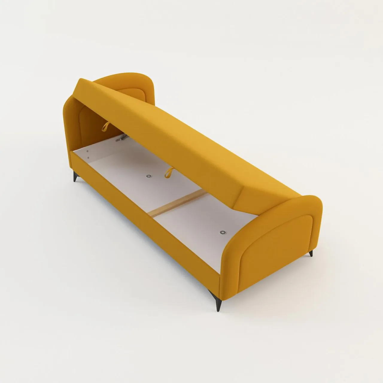 - Duży pojemnik pod siedziskiem to dodatkowa przestrzeń na domowe tekstylia.