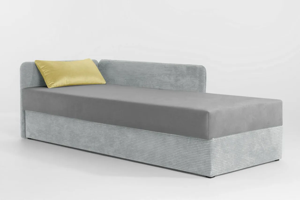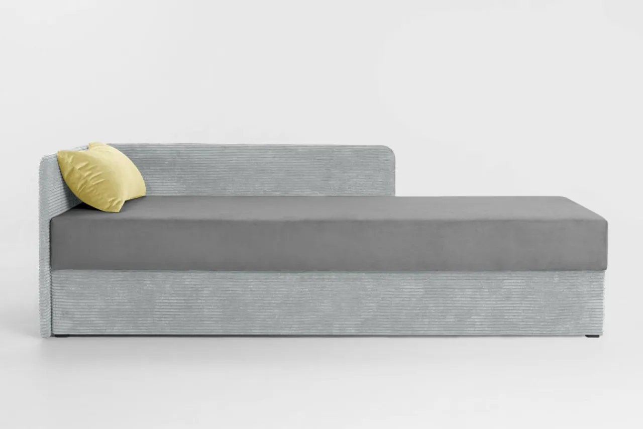 - Do tapczanu dołączona jest pluszowa poduszka w kontrastowym kolorze, która może być dekoracją albo podparciem pod głowę podczas spania.