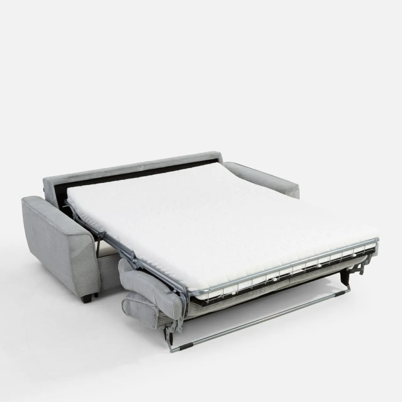 Sofa MONZO 140 łączy w sobie wygodę i praktyczność, oferując funkcję rozkładania do powierzchni spania 140×190 cm. Pokryta miękkim sztruksem w subtelnym, szarym odcieniu, wprowadza do wnętrza ciepło i nowoczesny design. Wyposażona w włoski stelaż, zapewnia komfort użytkowania.