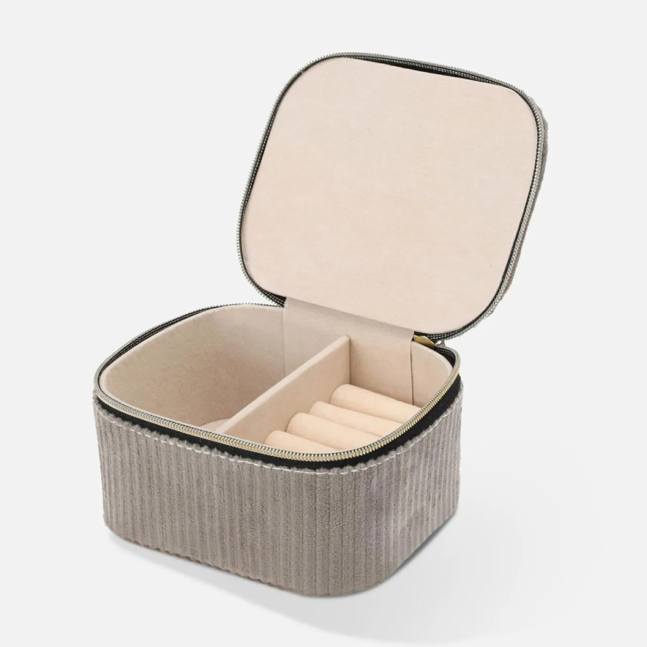 Stojaki Na Biżuterię| Pudełko na biżuterię jasnoszare 11x9x6 cm