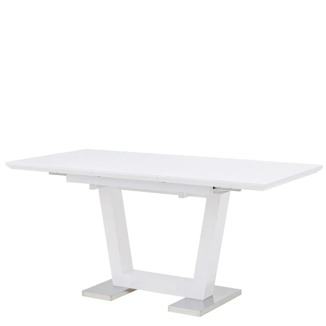 Dzięki metalowym prowadnicom stół ETTO rozkłada się i składa w bardzo prosty sposób. Wkładka o długości 40 cm znajduje się pod blatem głównym. Pełne rozłożenie stołu zwiększa jego długość do 160 cm.