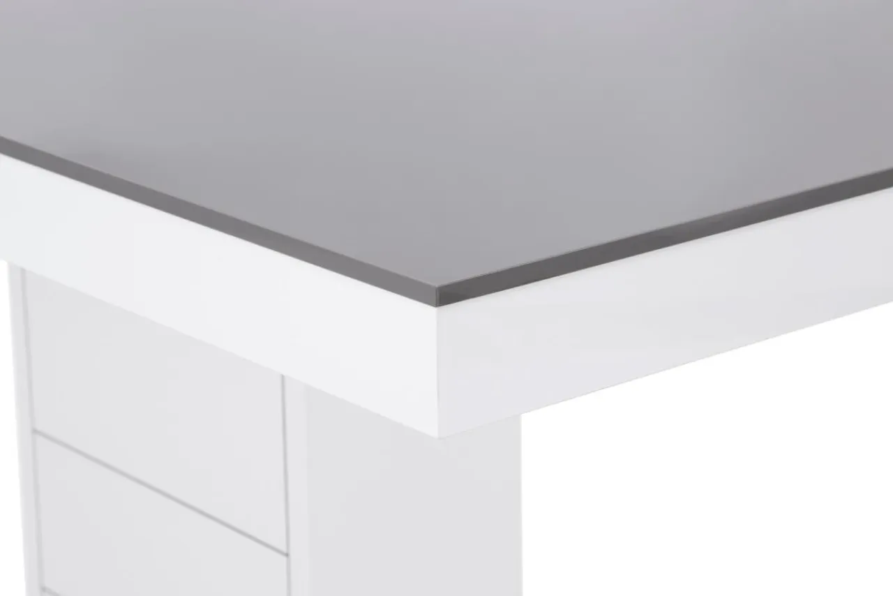 Stół z szarym blatem i podstawą wyróżnia się nowoczesnym designem i doskonale sprawdzi się w jasnych, współczesnych aranżacjach.