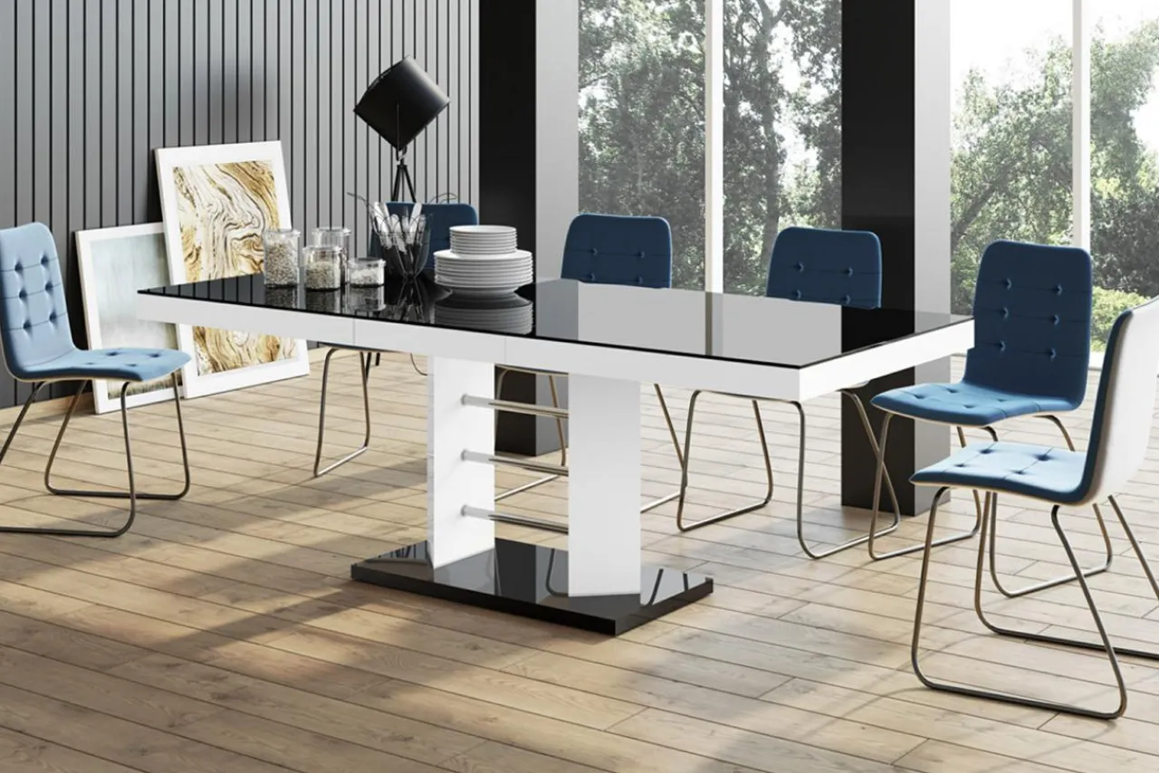 Stół LINOSA LUX z połyskującym wykończeniem podkreśli elegancki charakter jadalni.