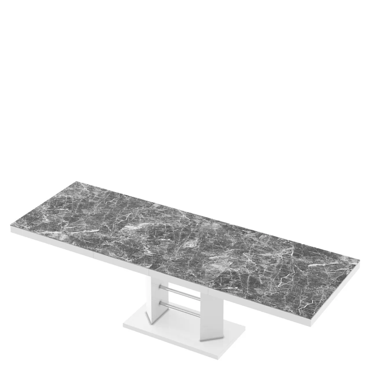 Stół LINOSA LUX oferuje 2 możliwości rozłożenia, schowek na wkładki pod blatem i wykończenie blatu imitujące marmur. Wszystko to sprawia, że stół dodaje wnętrzom luksusowego charakteru.