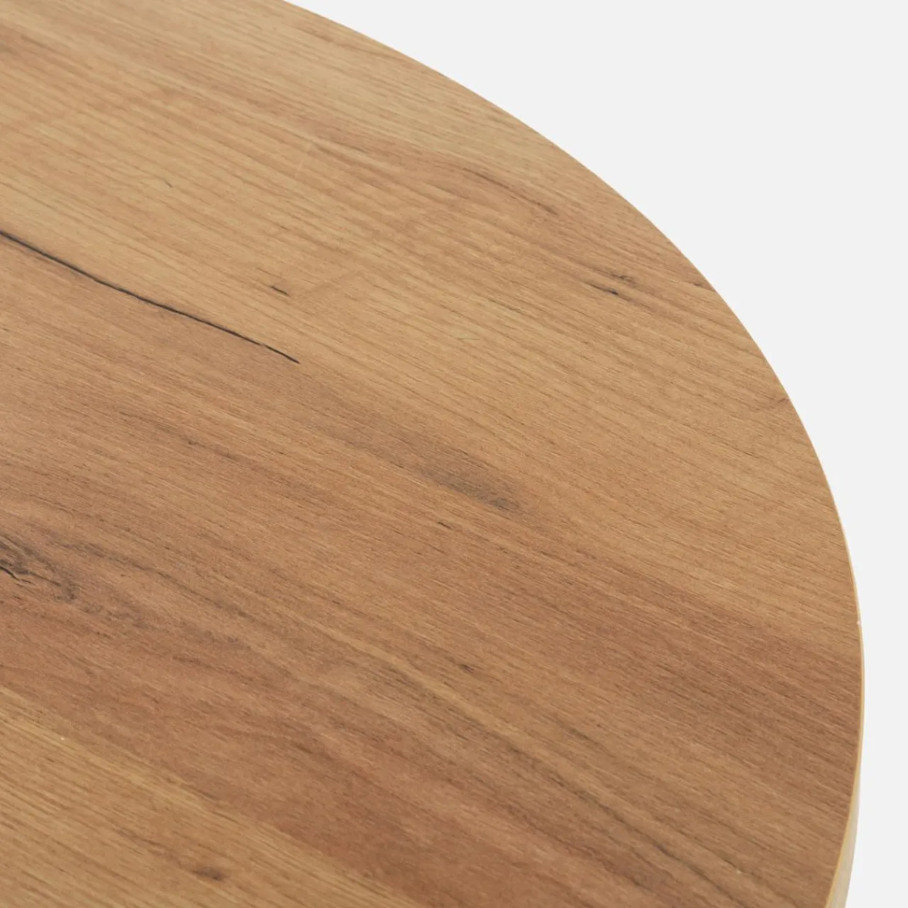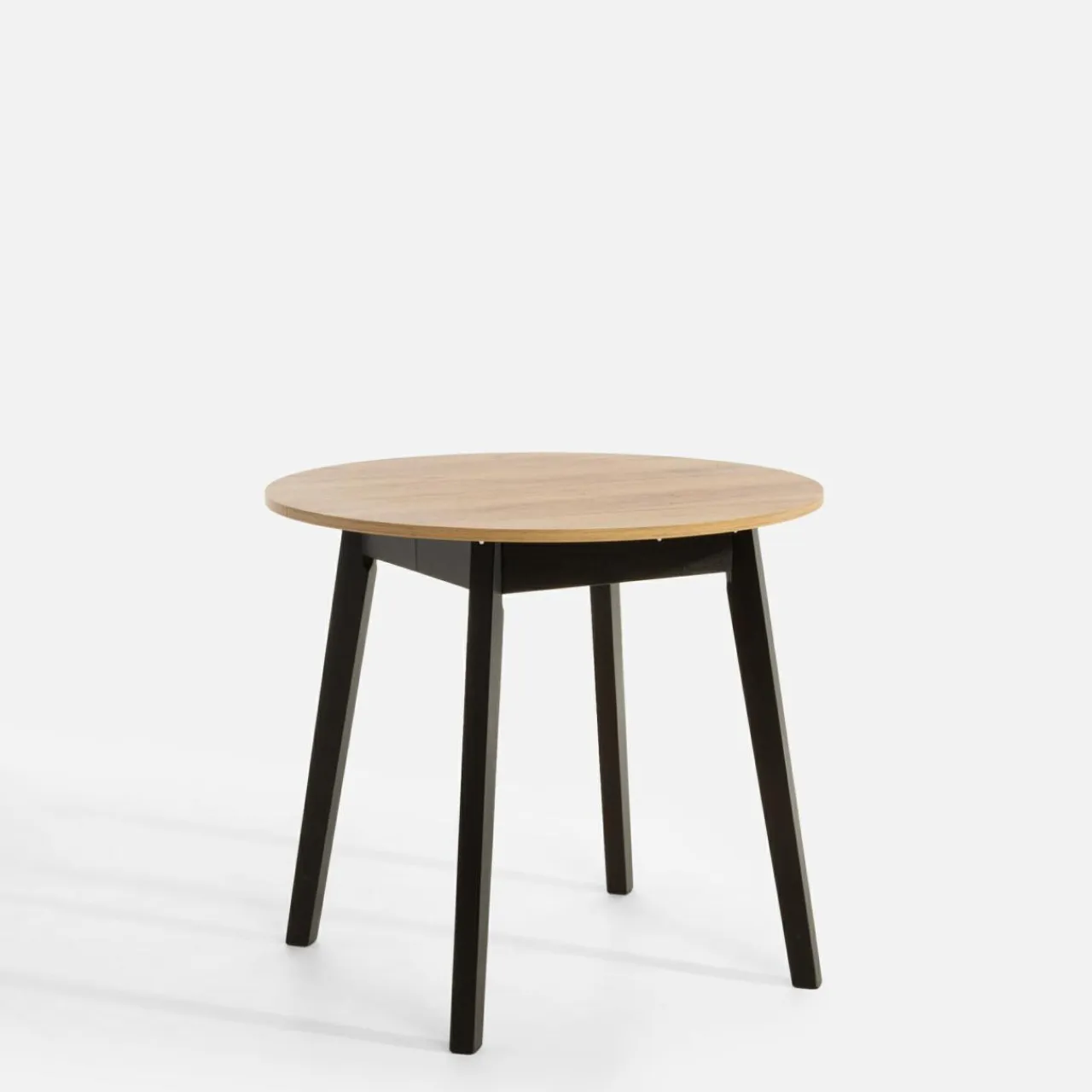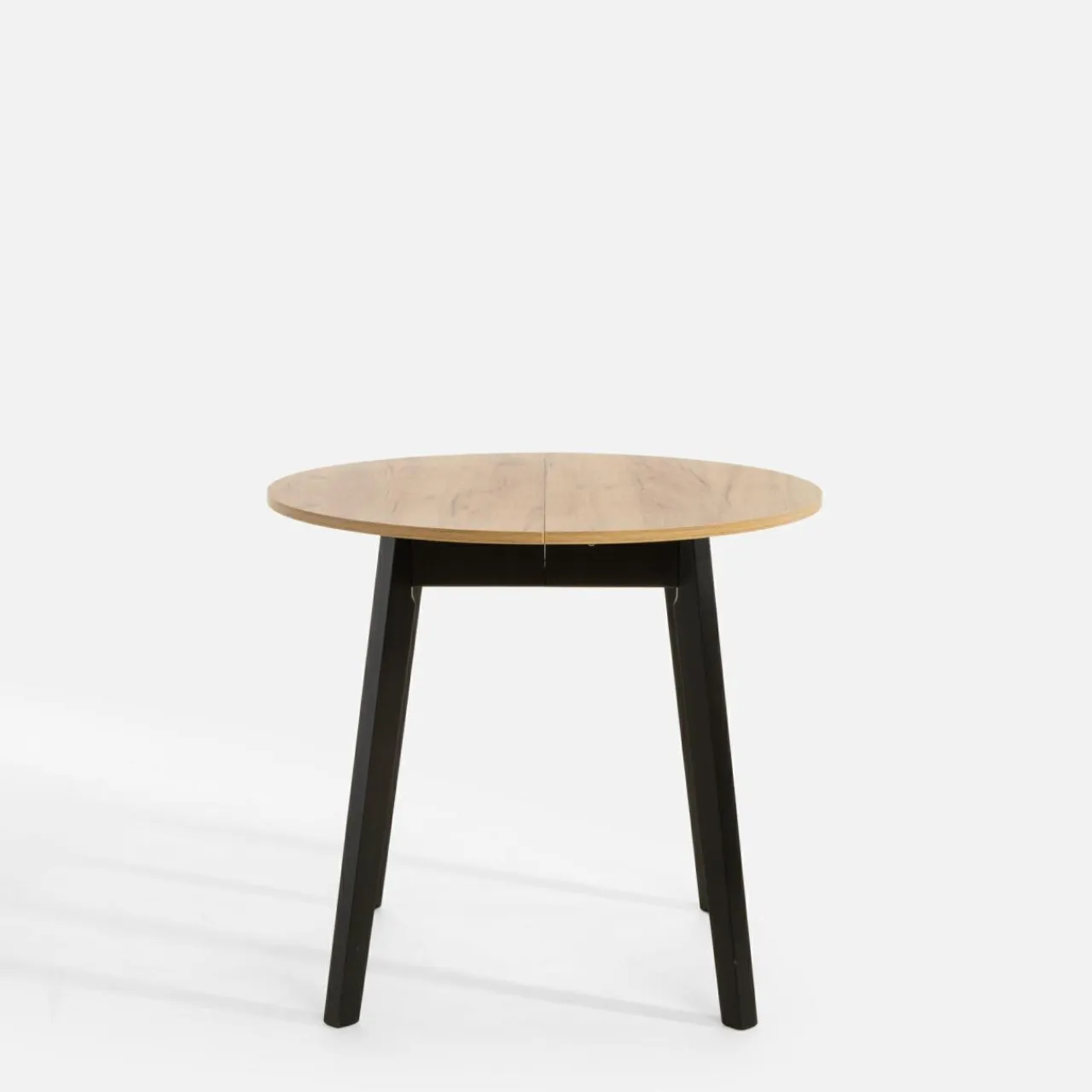 Blat stołu wykończono w kolorze złotego dębu craft a nogi w modnej czerni – takie połączenie sprawdzi się w pomieszczeniach urządzonych w stylu retro.