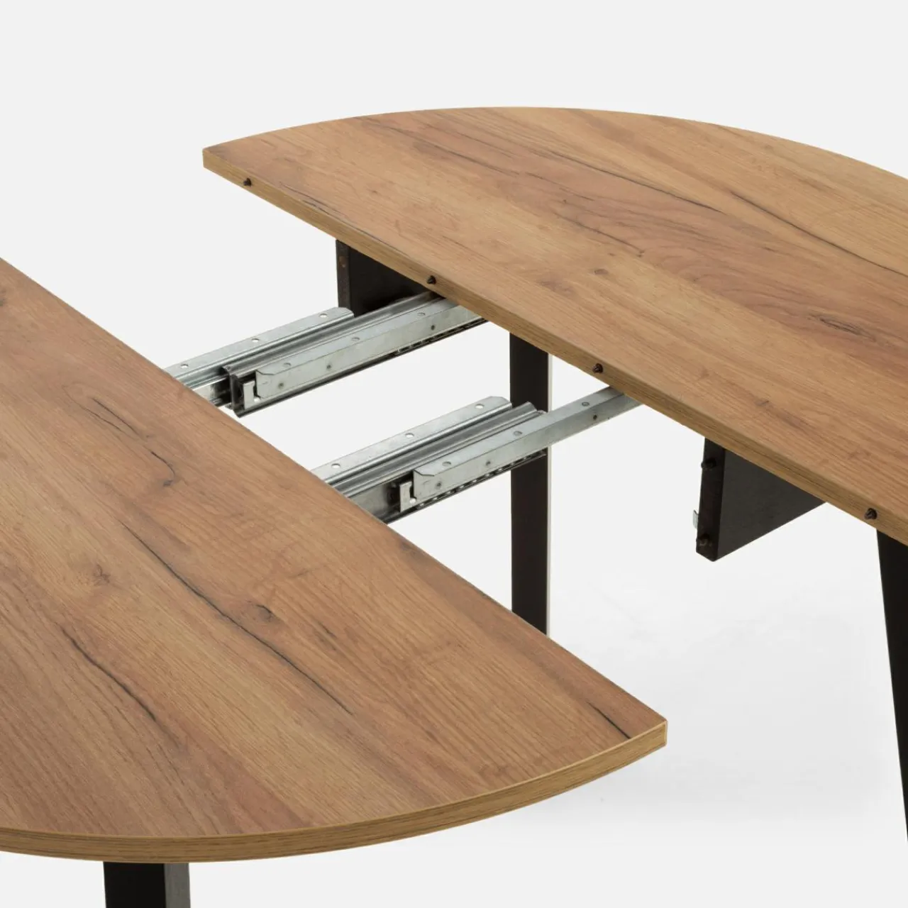 Okrągły na co dzień, owalny od święta. Taki może być blat stołu COMET w zależności od tego, ile osób zaprosisz do wspólnego biesiadowania.