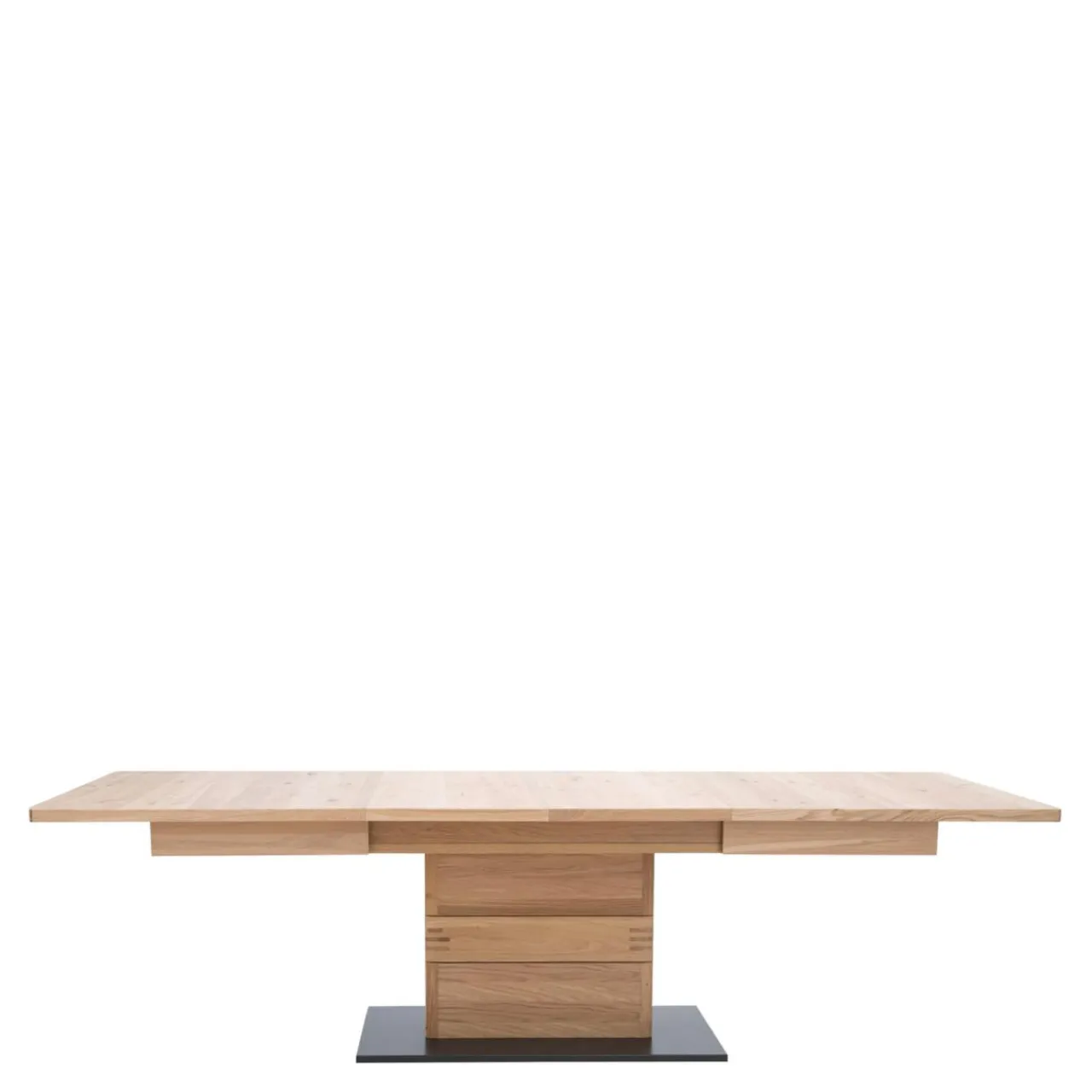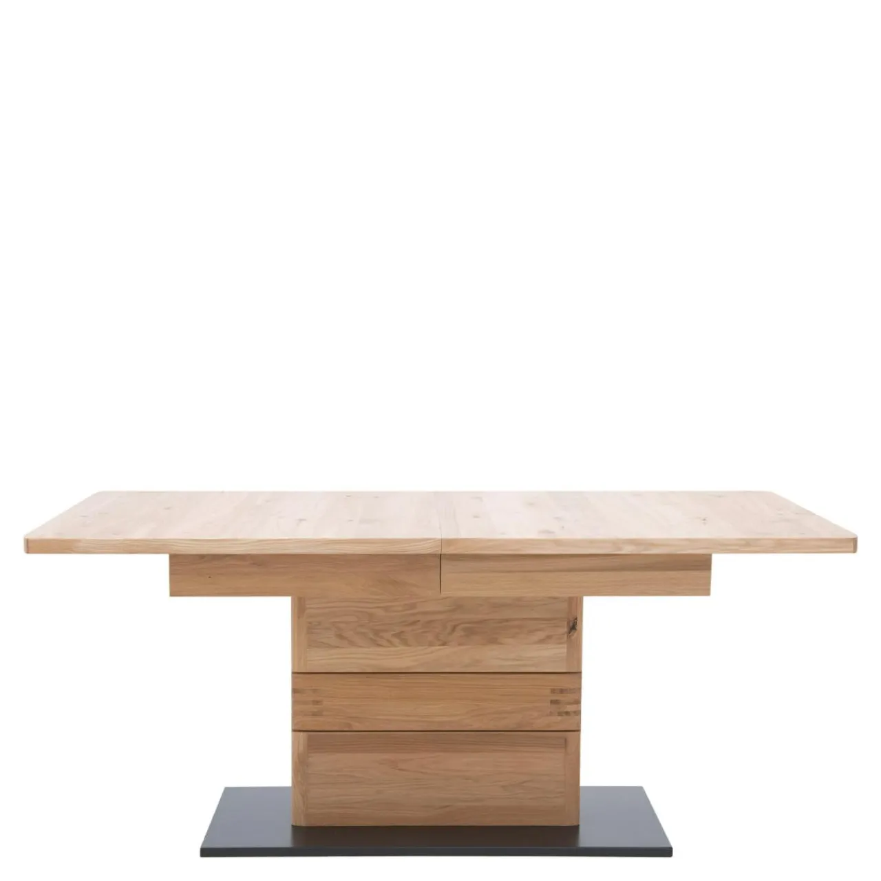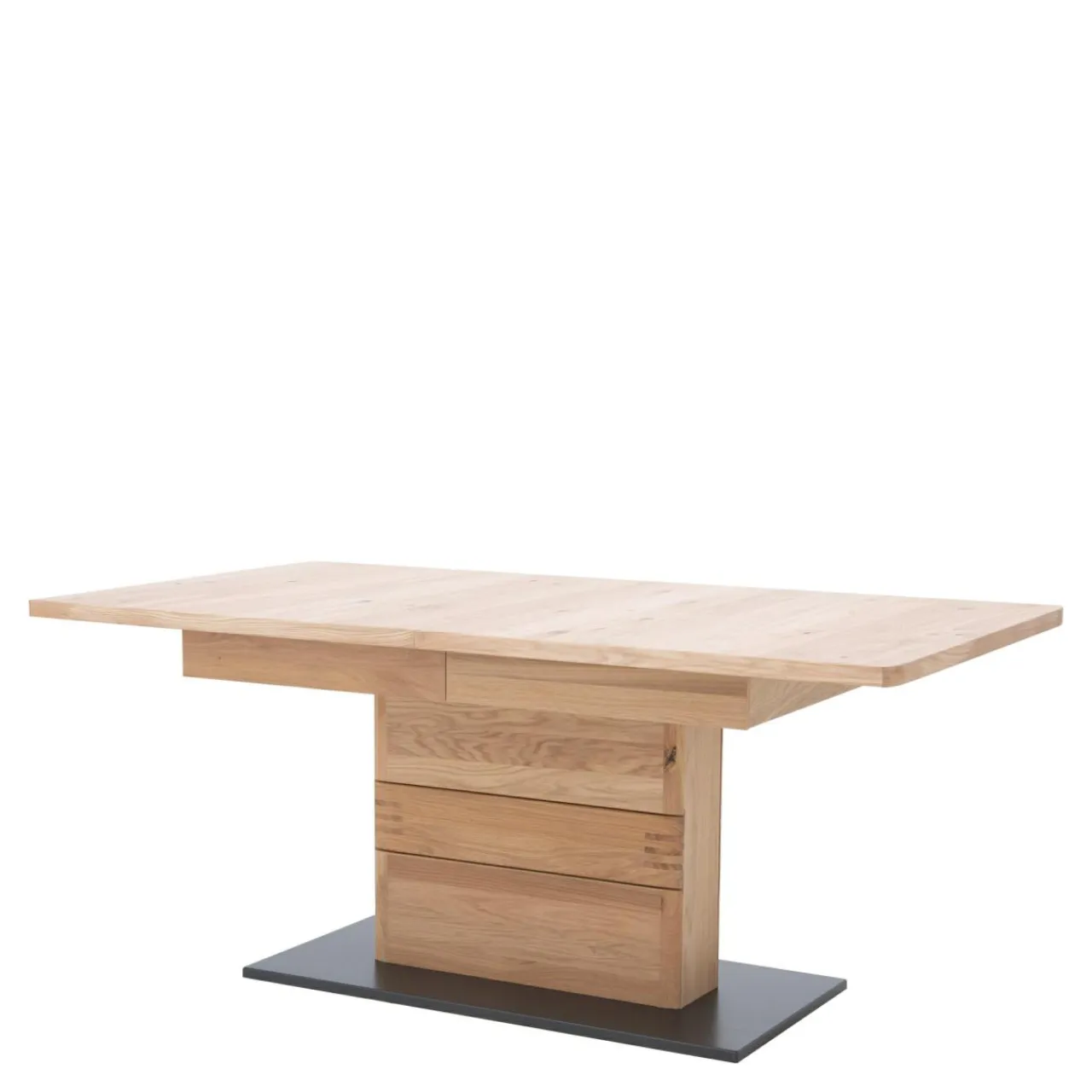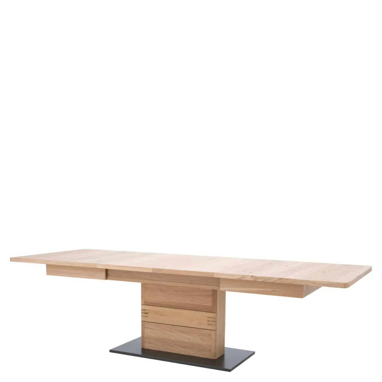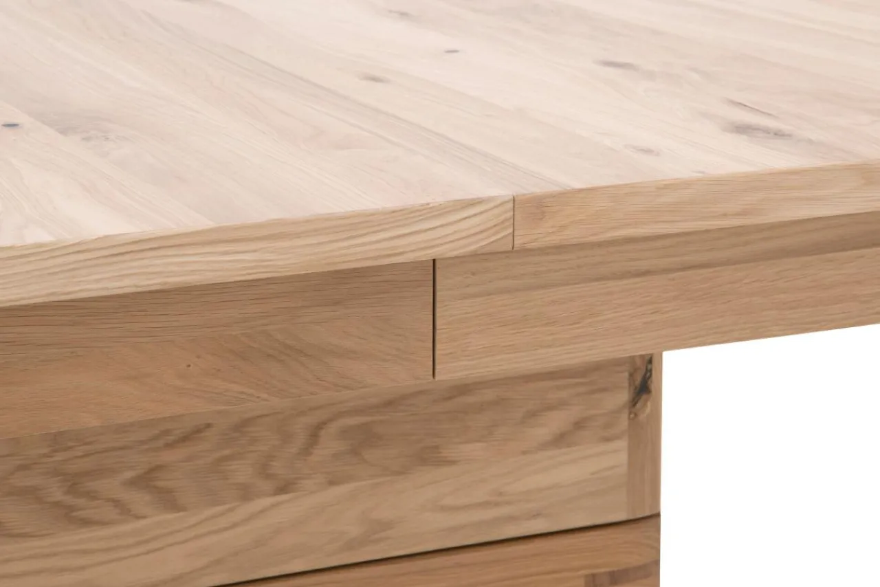 Wybarwienie w kolorze drewna dębowego w połączeniu z czarną podstawą sprawia, że stół estetycznie prezentuje się w nowoczesnych, rustykalnych i industrialnych jadalniach.