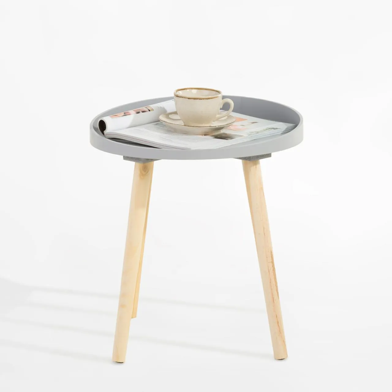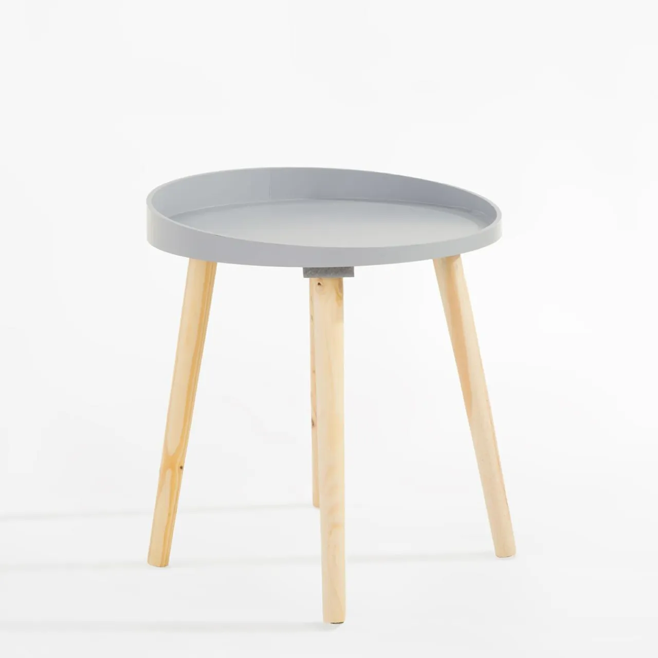 Wykonany z MDF blat został pomalowany na kolor Matt Grey (PANTONE 14-4105TPG). Nogi wyprodukowano z drewna sosnowego w naturalnym kolorze.