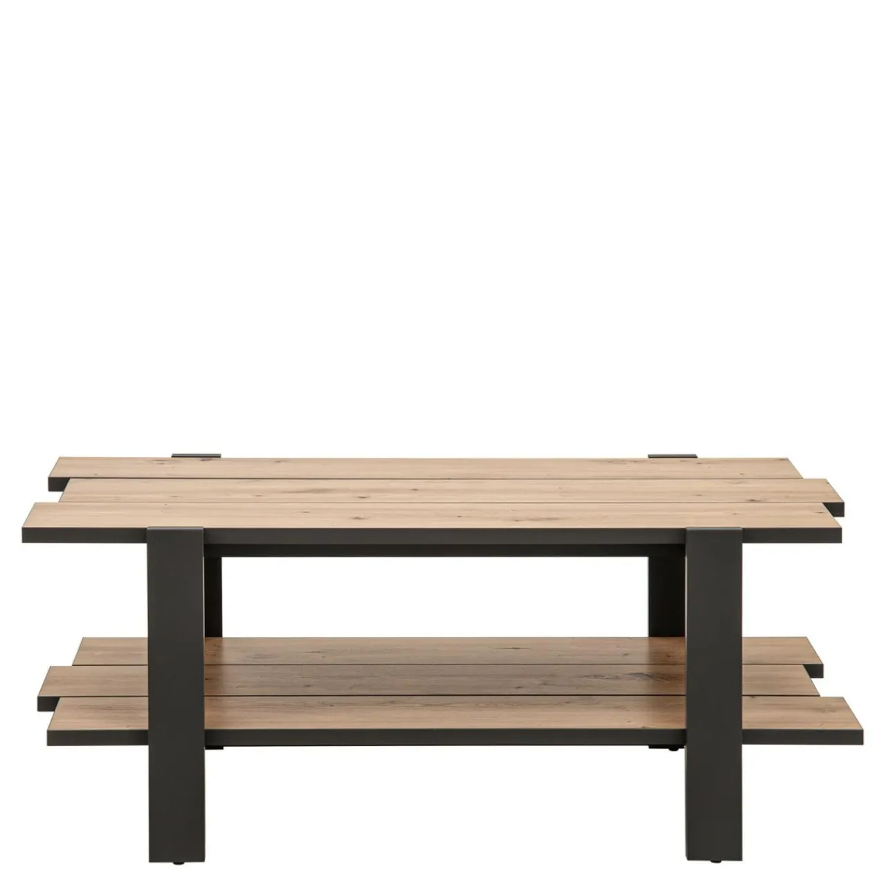 Stolik kawowy COFFEE TABLES został wykonany z płyty wiórowej i pokryty folią. Na szczególną uwagę zasługuje jego oprawa kolorystyczna. Jasne wybarwienie dębu artisan świetnie komponuje się z szarym stelażem.