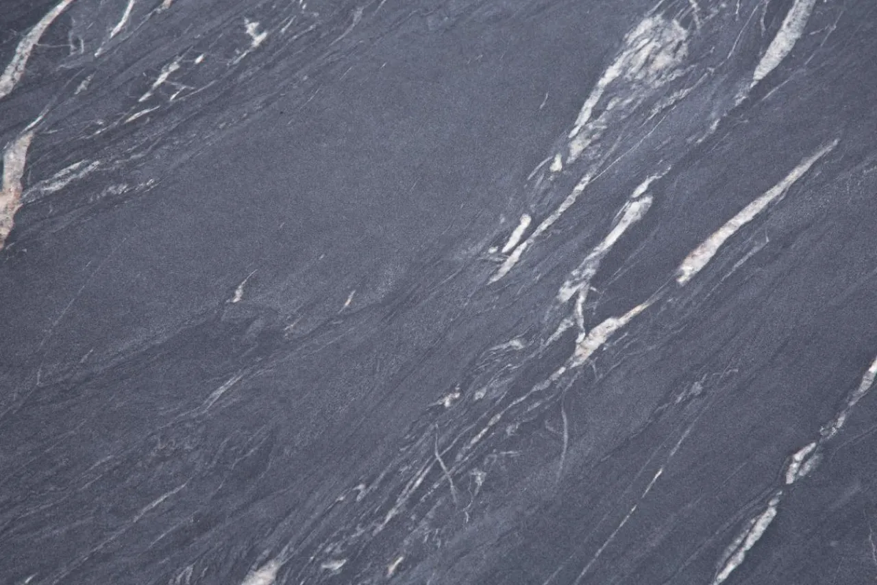Blat z płyty meblowej imituje strukturę kamienia. Jego powierzchnia została nieregularnie ozdobiona wzorem marmurowym, co dodaje mu elegancji.