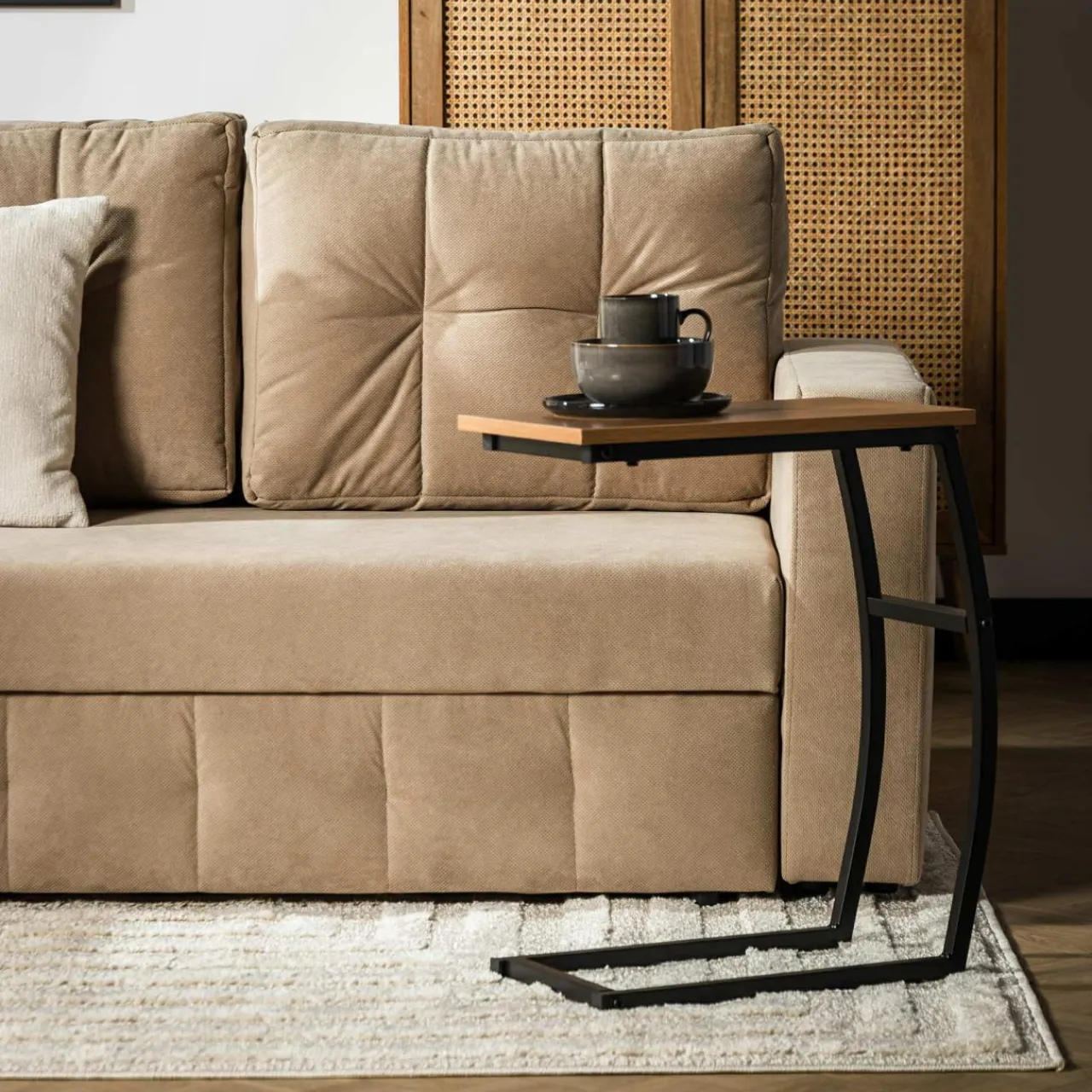 Stolik LEYA skonstruowano w taki sposób, by można było wsunąć go pod mebel tapicerowany. Blat umieszczono na wysokości 60 cm – usiądź wygodnie i popracuj na laptopie .