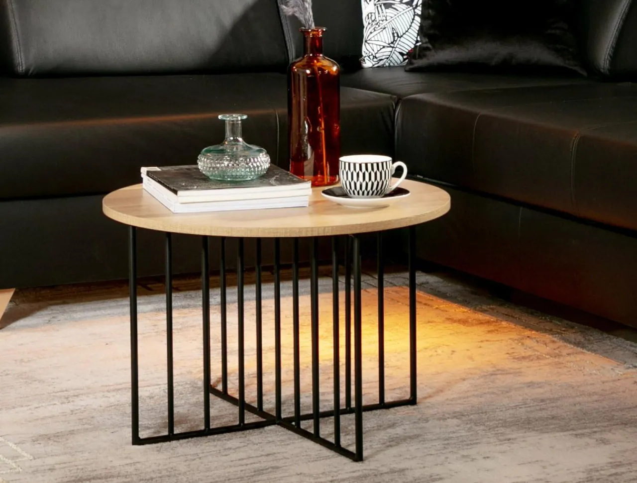 Szukasz niewysokiego stolika do nowoczesnego wnętrza? Spodoba Ci się stolik DUETTO z okrągłym blatem i oryginalnym, metalowym stelażem.