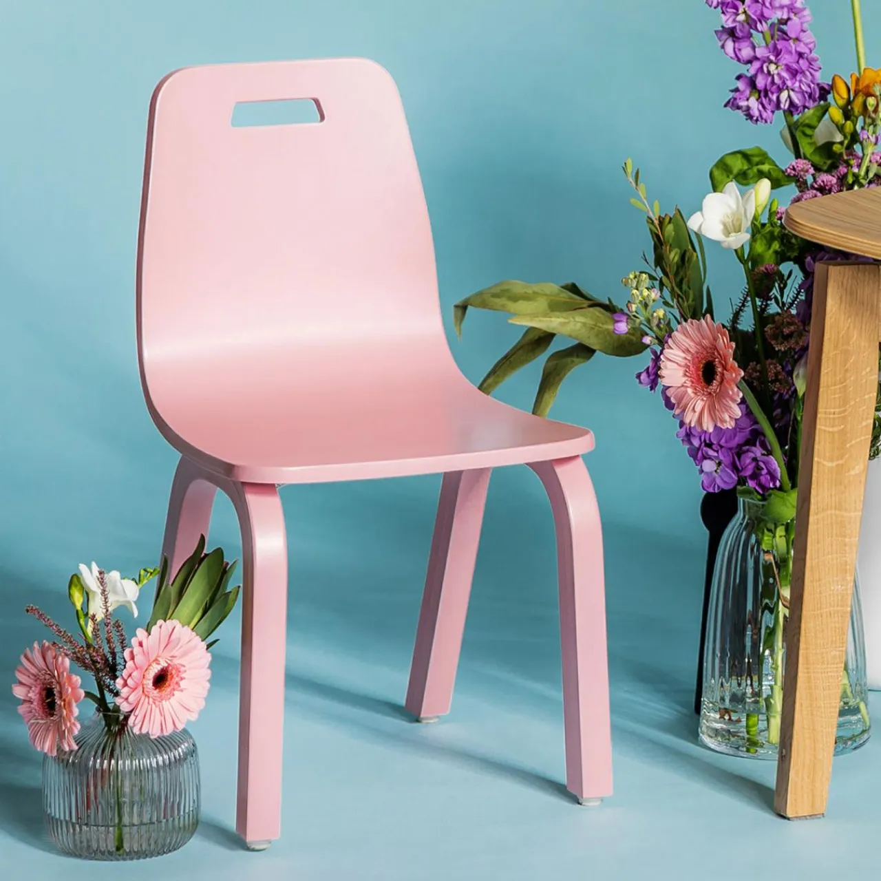 - Krzesełko wykonano ze sklejki drewna bukowego i zabezpieczono emalią.