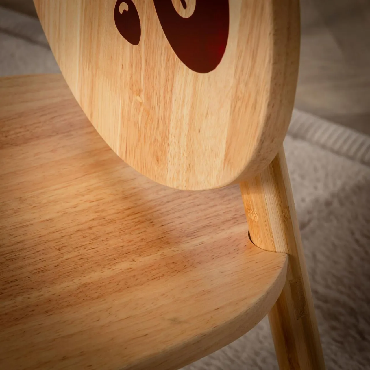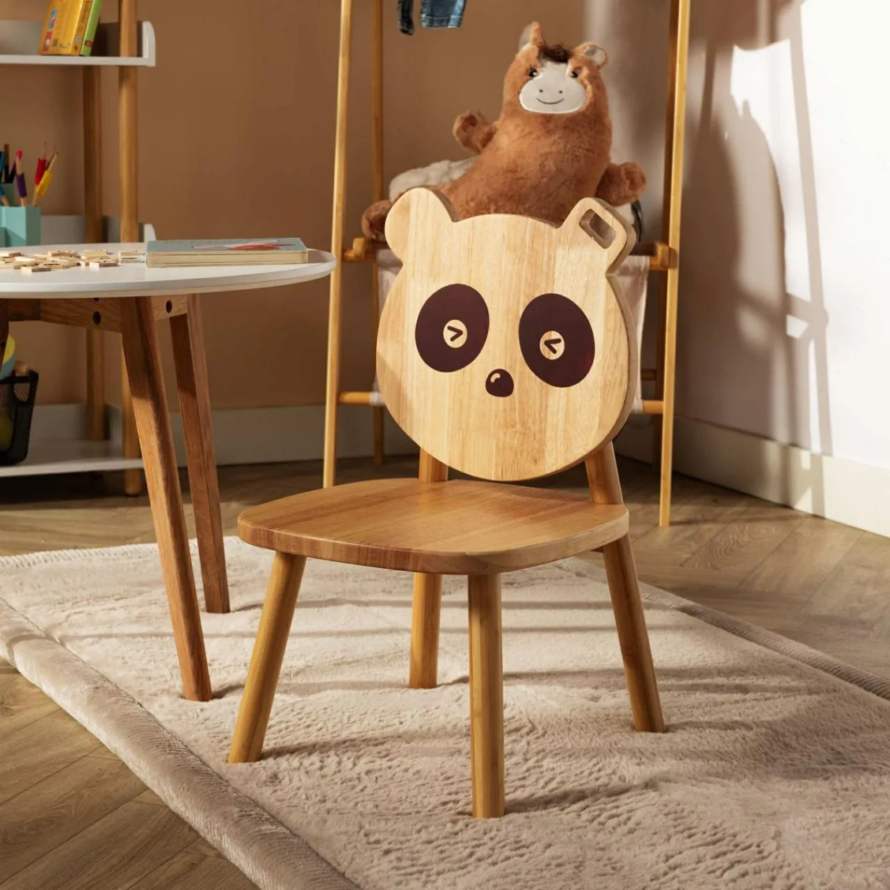 Krzesełko PUNTA polubią najmłodsi domownicy. Zaokrąglone oparcie z buźką pandy i uszkami zachęci je do spędzania czasu przy stoliku.