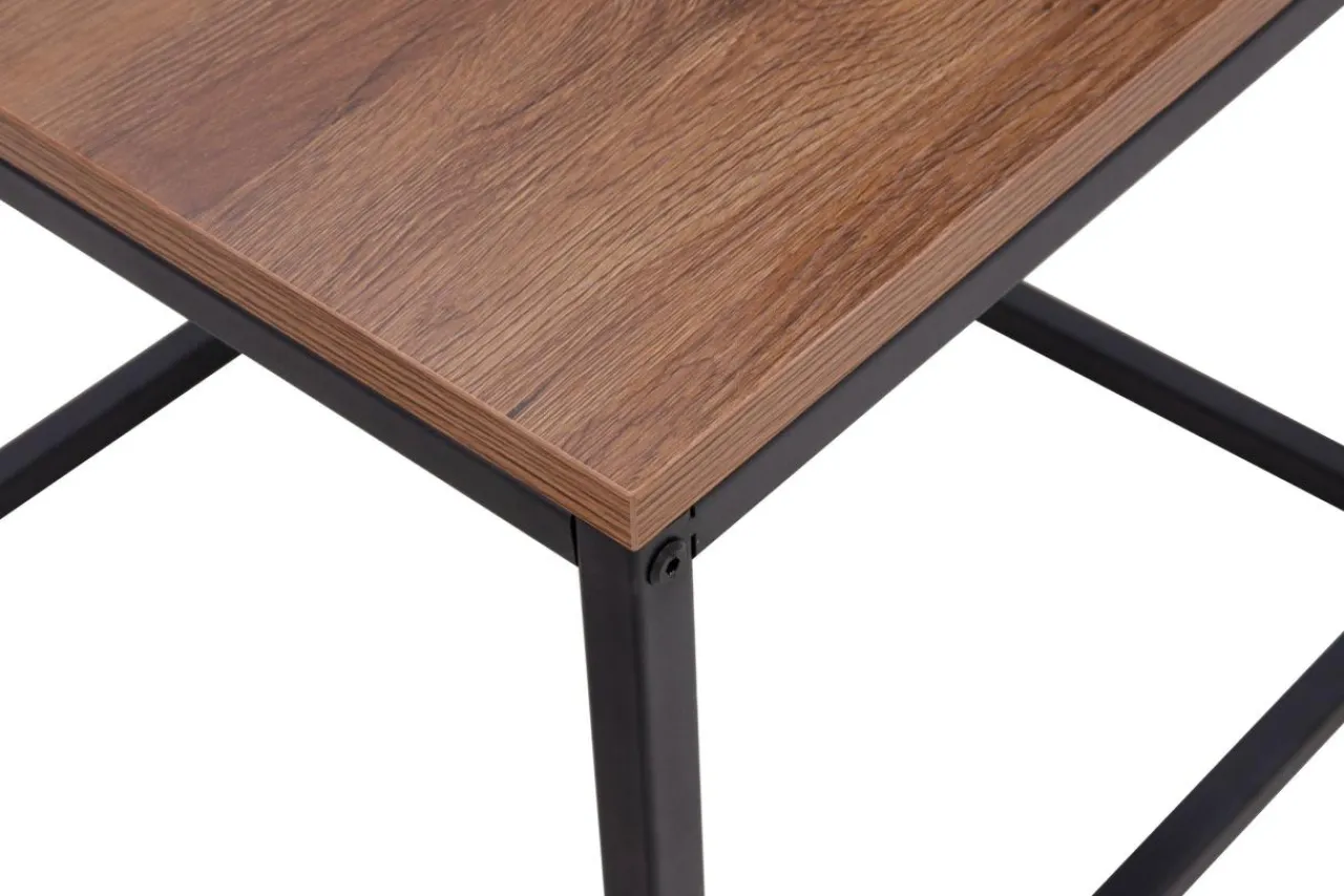 Czarne metalowe nogi dodają wnętrzu surowego charakteru, natomiast blat wykonany z płyty wiórowej pokrytej okleiną drewnopodobną, wprowadzi do wnętrza przytulny klimat.