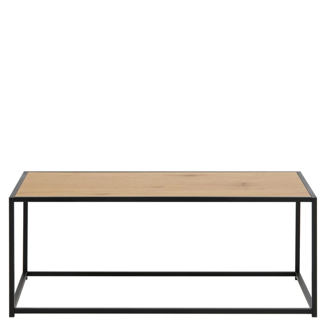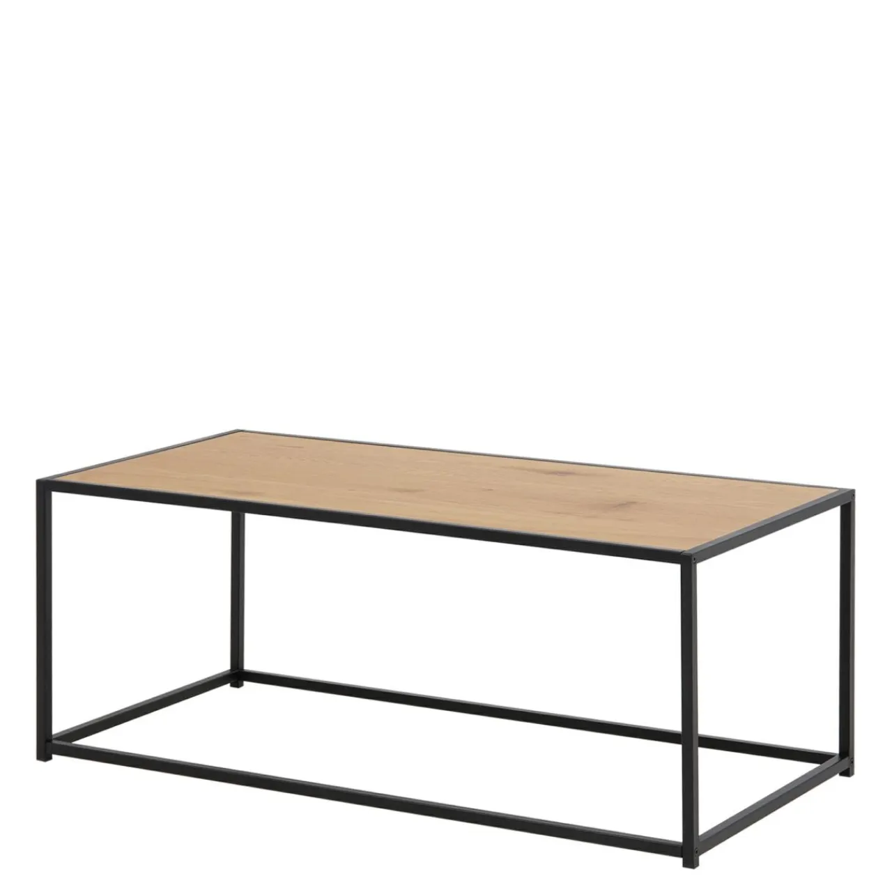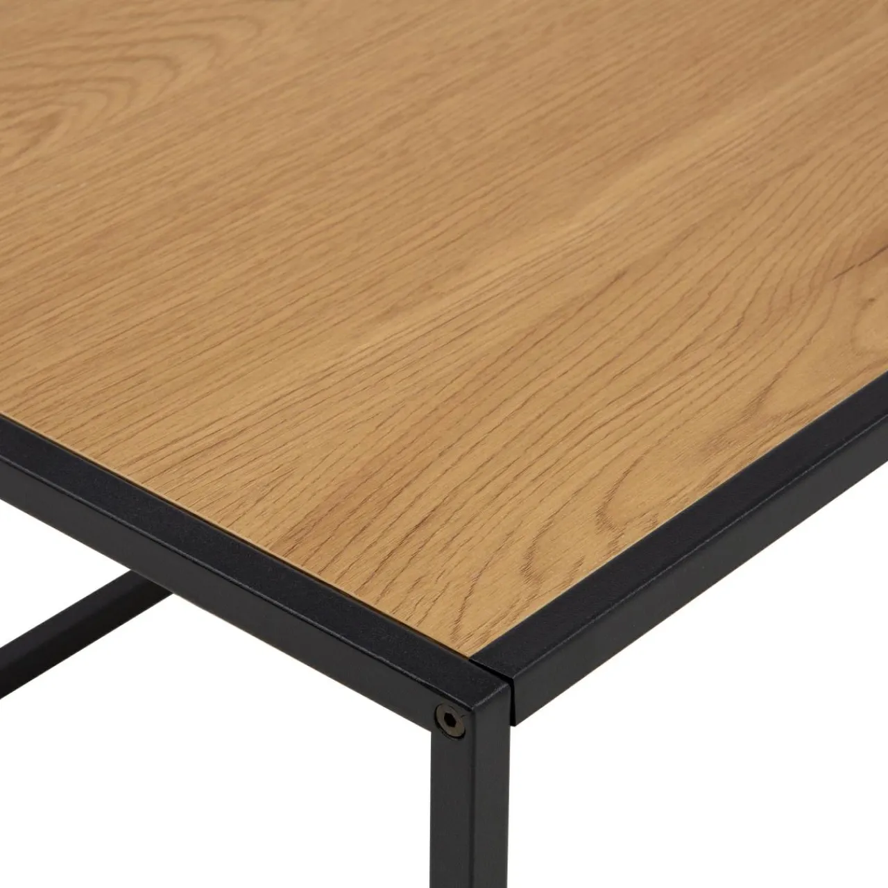 Czarne, metalowe, matowe nogi nadają stolikowi lekkości, a blat w odcieniu dzikiego dębu podkreśli wyraziste wnętrze oryginalnego salonu.