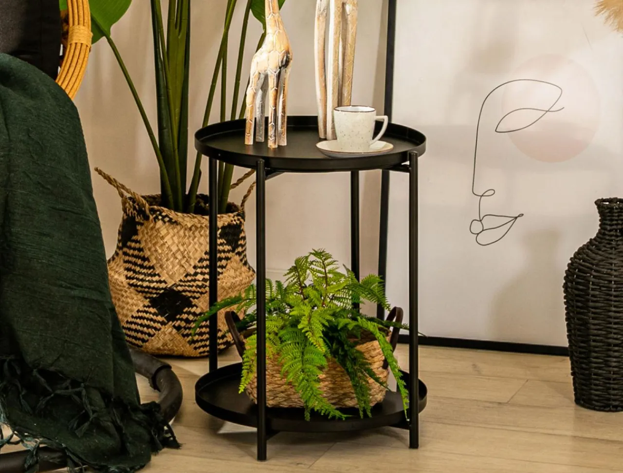 Stolik SALAR został wykonany z metalu i wykończony farbą proszkową w kolorze czarnym.