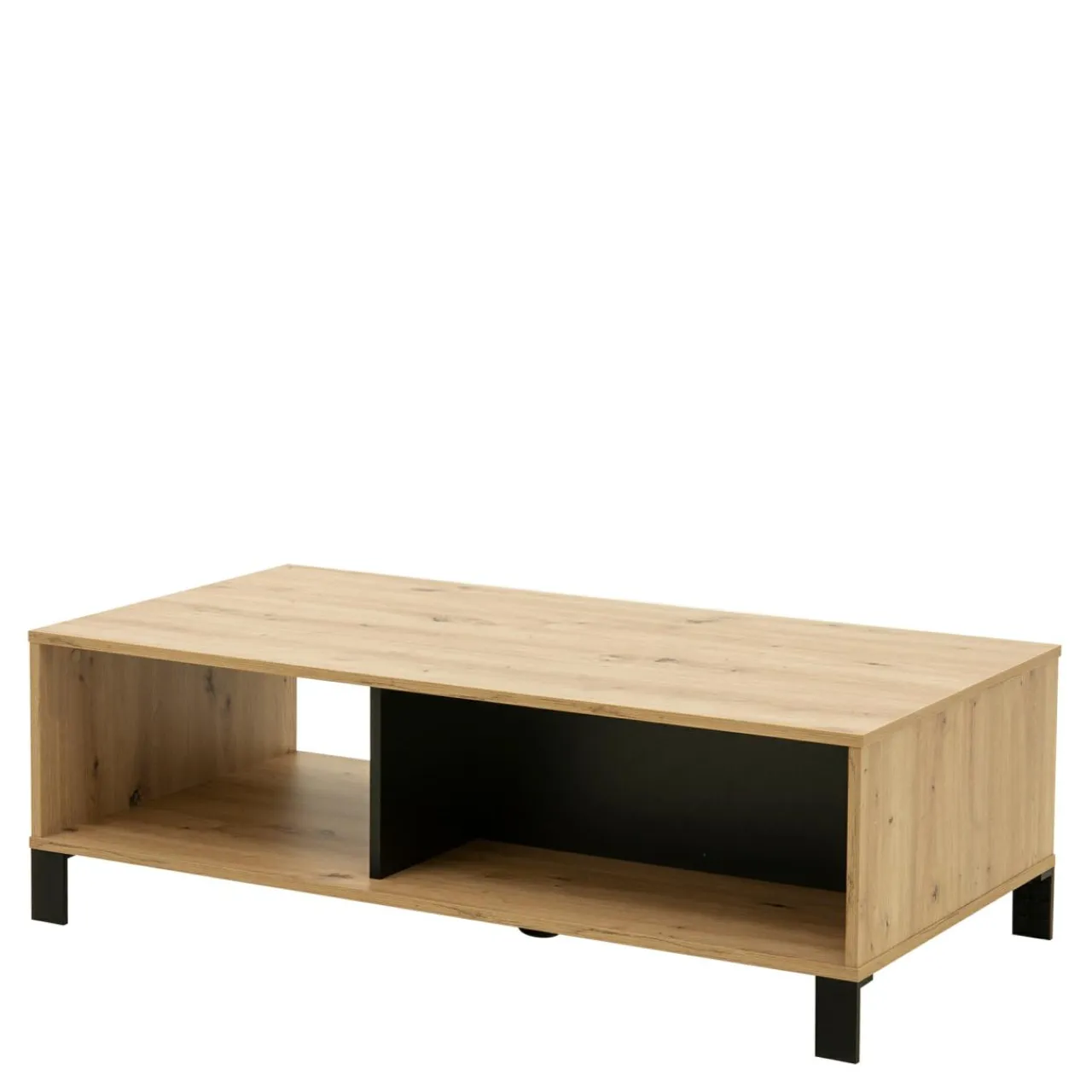 Metalowe, czarne wstawki w połączeniu z wybarwieniem w kolorze dąb artisan – tym wyróżnia się stolik SOFIA.
