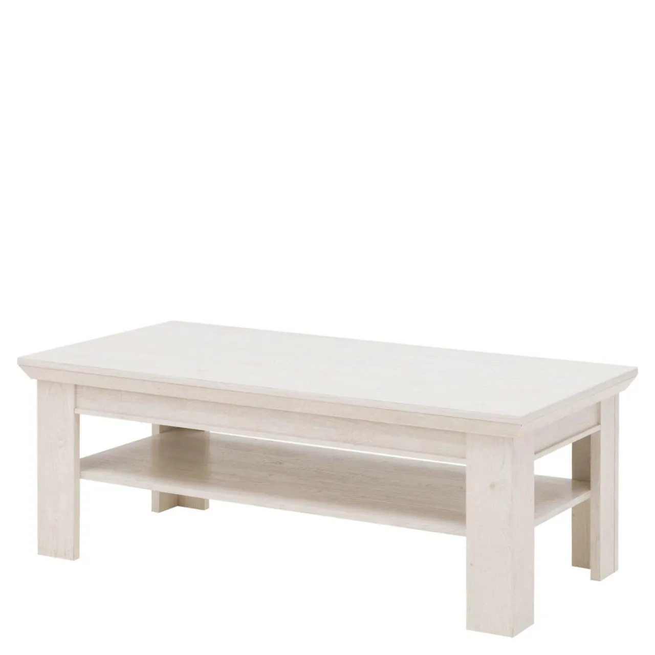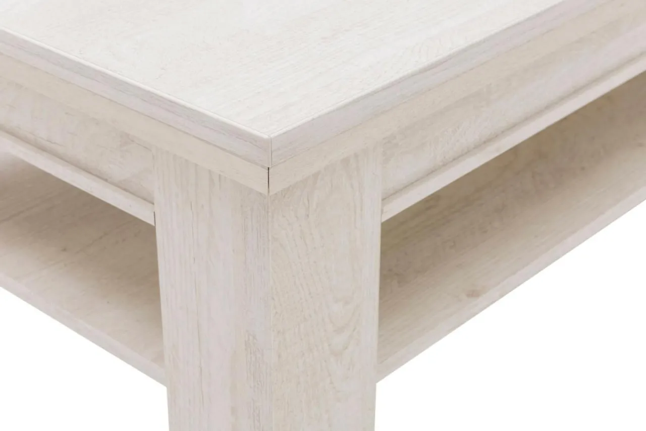 Wybarwienie w chłodnym odcieniu wpasuje się w większość współczesnych wnętrz. Stolik wykończono folią imitującą strukturę sosnowego drewna (pinia biała), dzięki czemu zyskuje on nietuzinkowy wygląd.