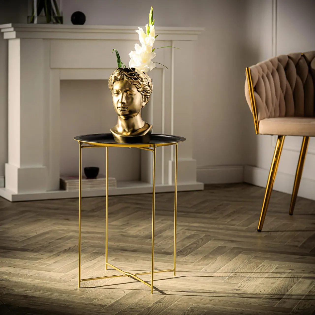 Stoliki Kawowe| Stolik z tacą czarno-złoty 48 cm