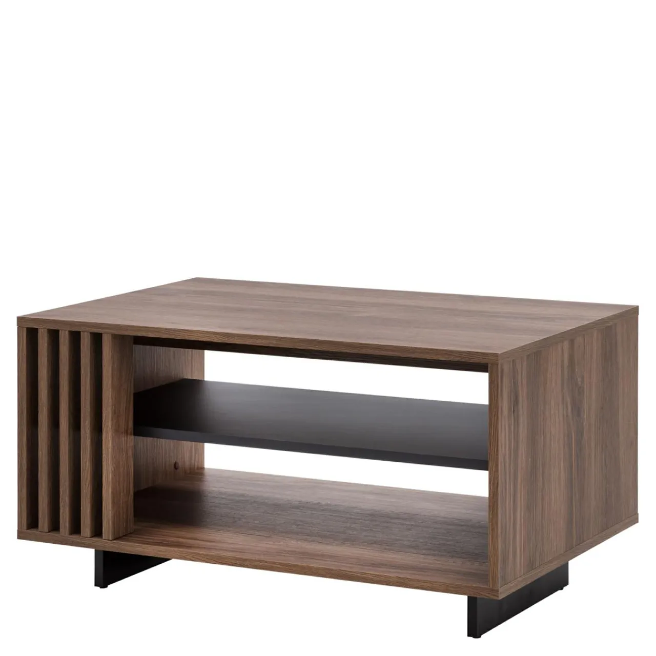 Stolik kawowy BOSTON wchodzi w skład kolekcji, której wyznacznikiem jest zastosowanie efektu lameli na frontach mebli.