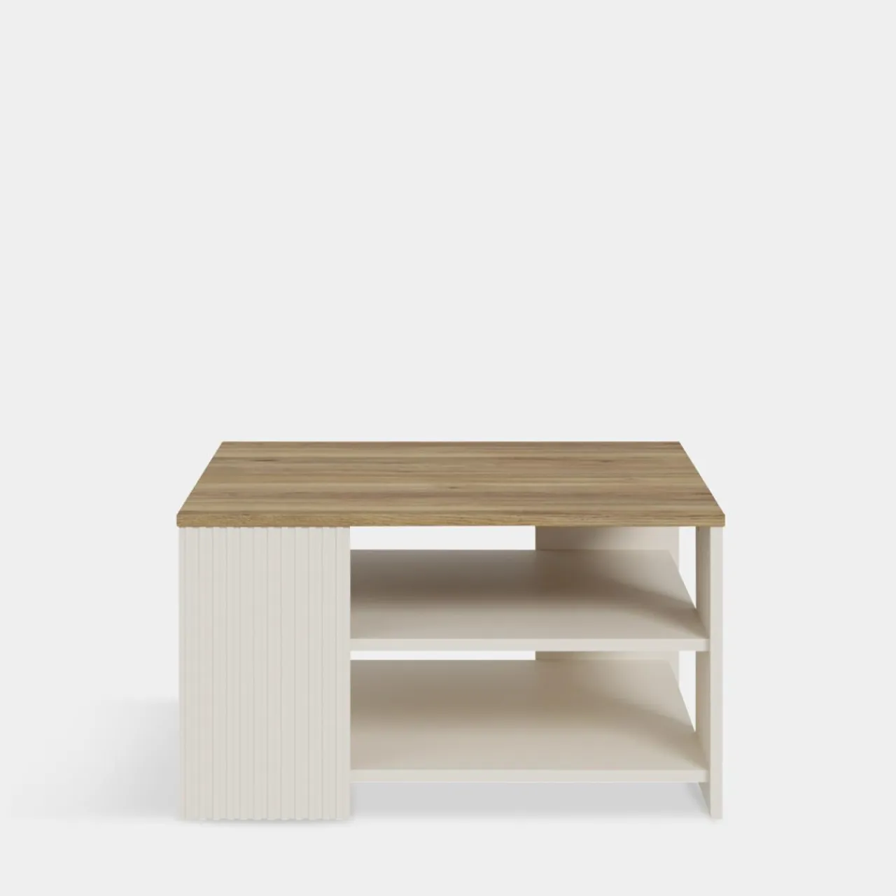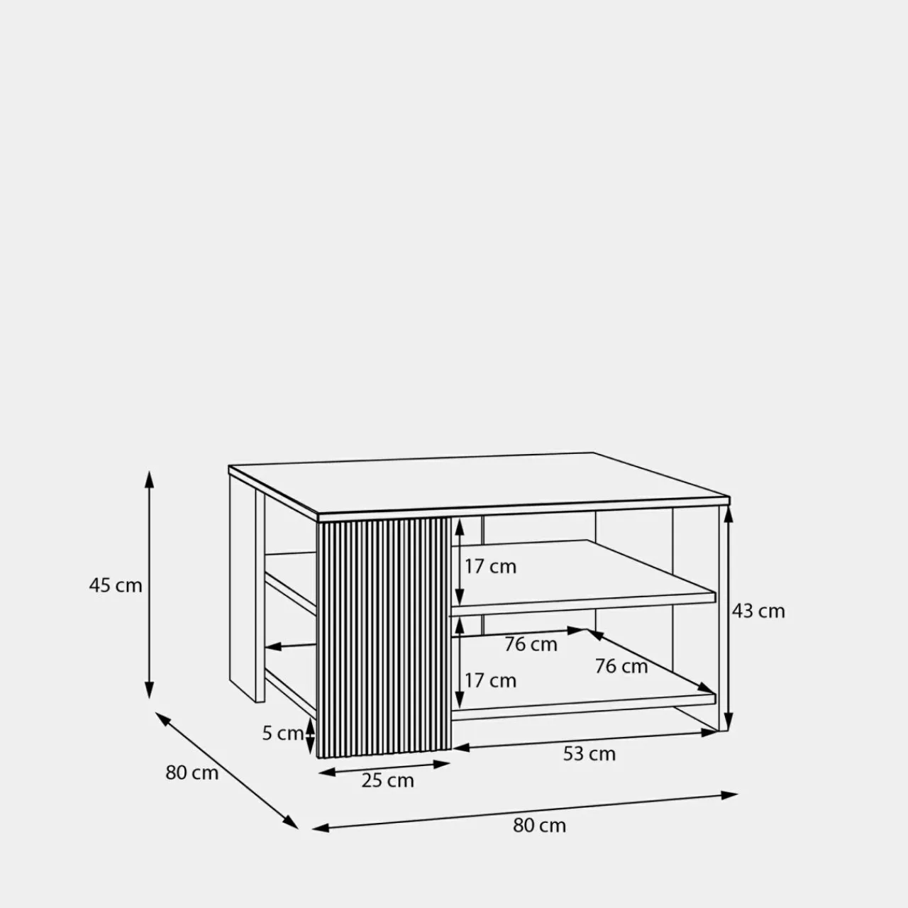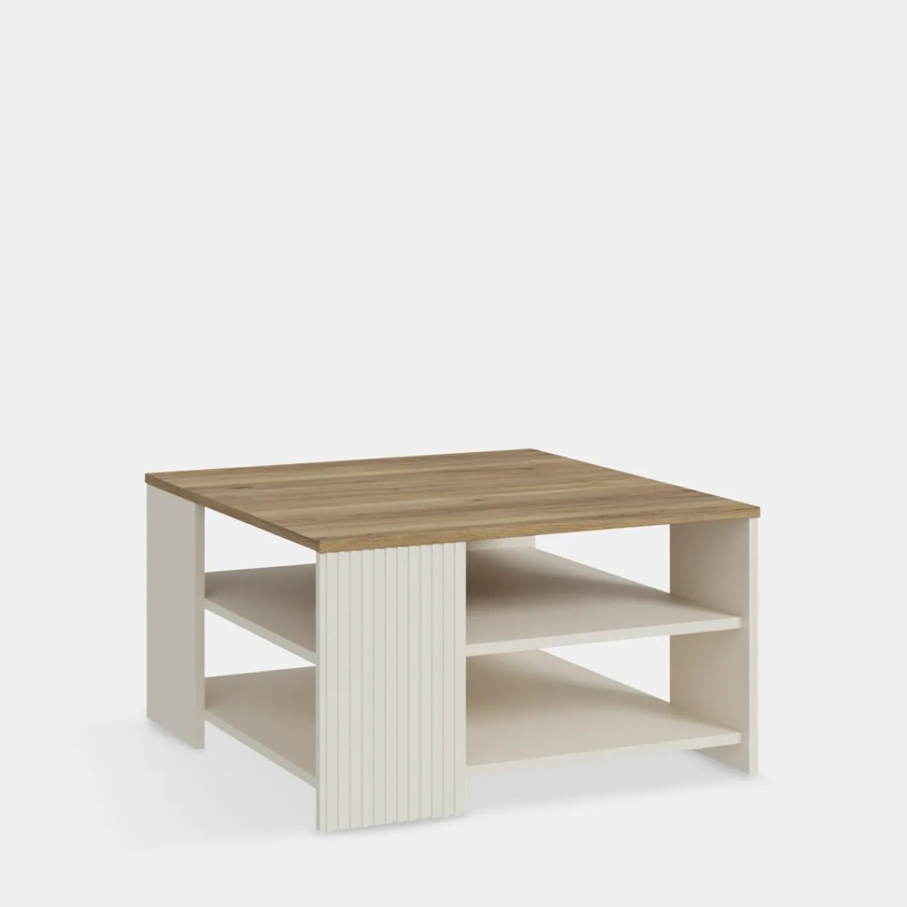 Stolik kawowy OAK SQUERE postawiony przy dużym wypoczynku będzie Twoim towarzyszem przy relaksie z książką lub seansie filmowym. Dwie półki pod blatem pozwolą Ci zapanować nad bałaganem w salonie i mieć potrzebne rzeczy pod ręką, kiedy spędzasz czas na sofie.