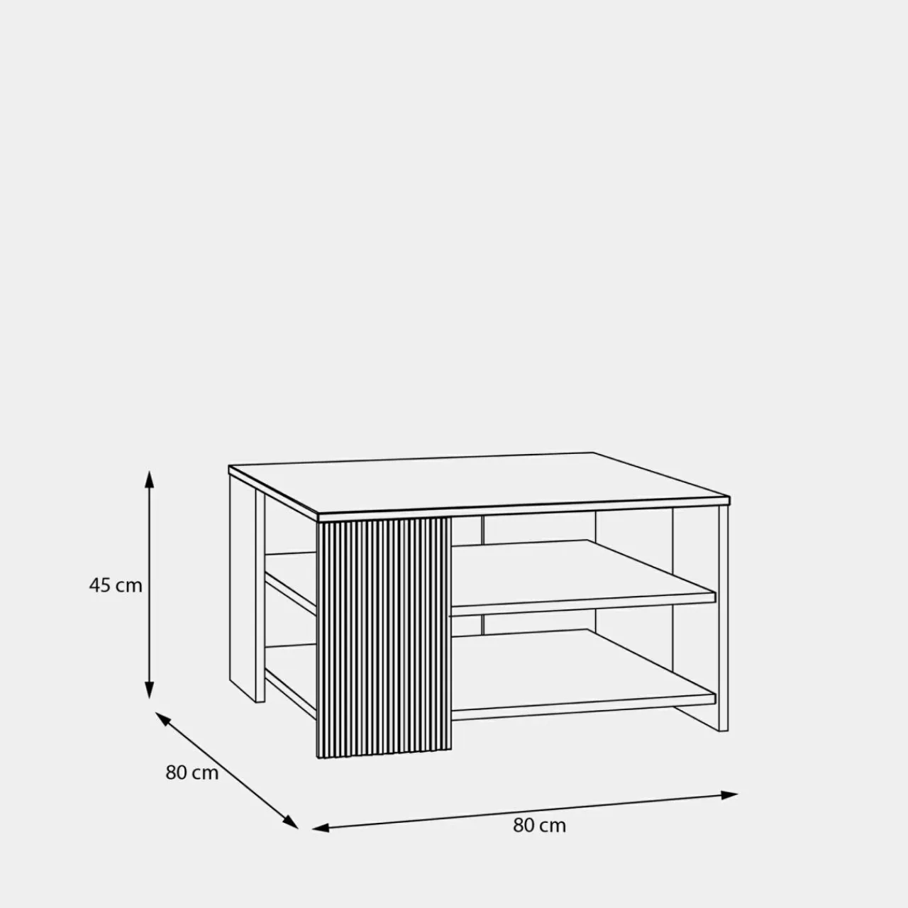 Stolik kawowy OAK SQUERE odnajdzie się w nowoczesnych wnętrzach. Duży blat o wymiarach 80×80 cm gwarantuje miejsce na przekąski podczas wieczorów filmowych i na gry planszowe przy rodzinnych spotkaniach.