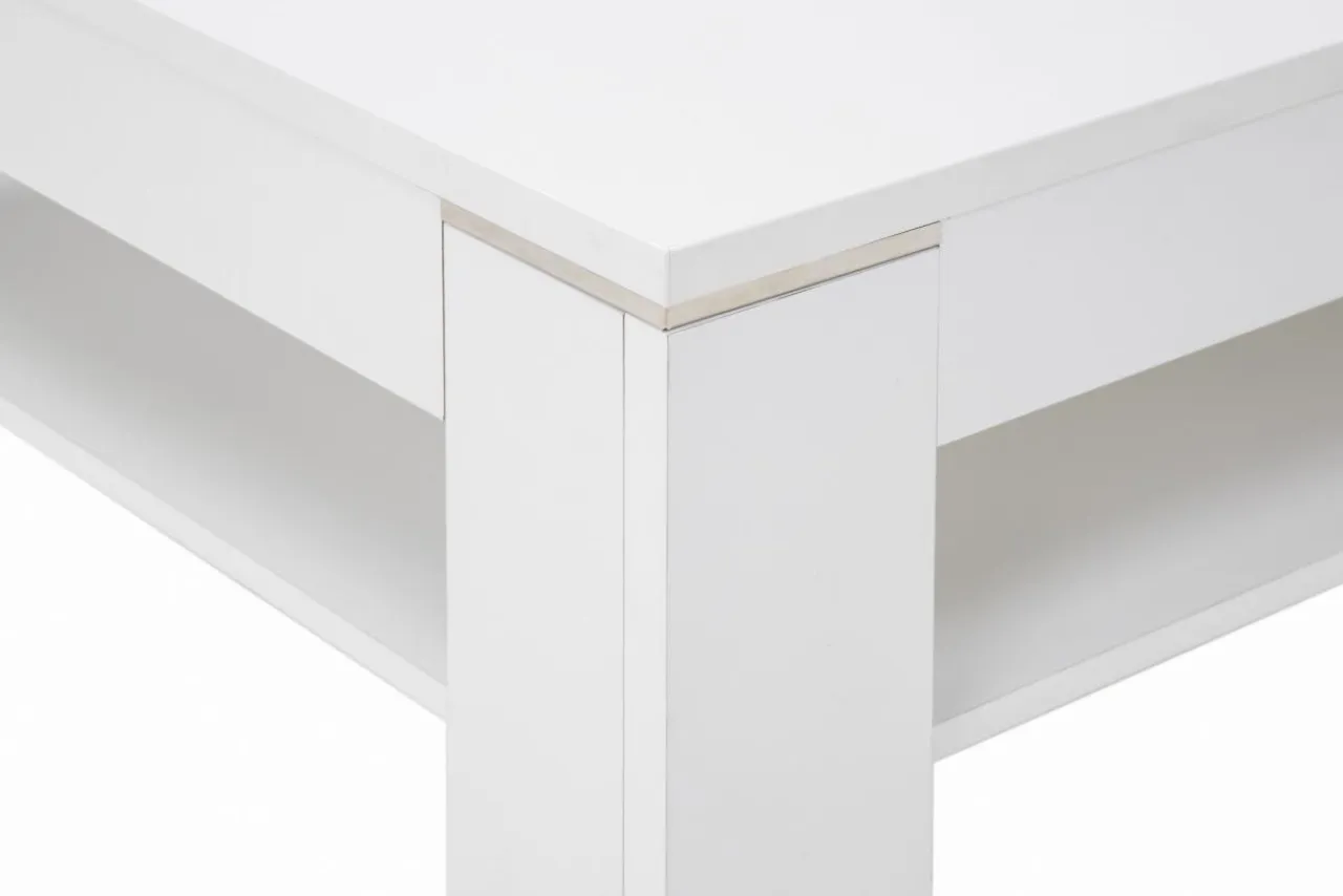Stolik został wykonany z płyty meblowej pokrytej laminatem dzięki czemu jest trwały.