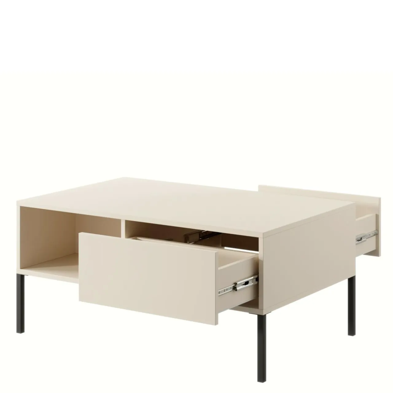 - Stolik wykonano z płyty meblowej i pokryto laminatem, który zapewnia łatwe czyszczenie.