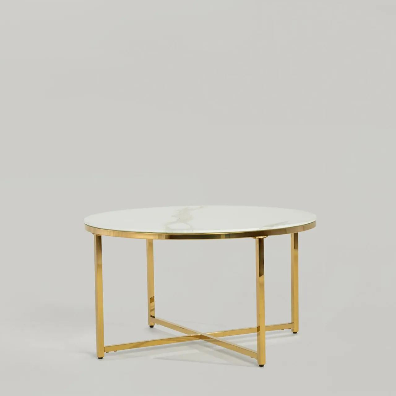 - Podstawa wykonana ze złotej stali polerowanej podkreśli elegancki charakter pokoju dziennego.
