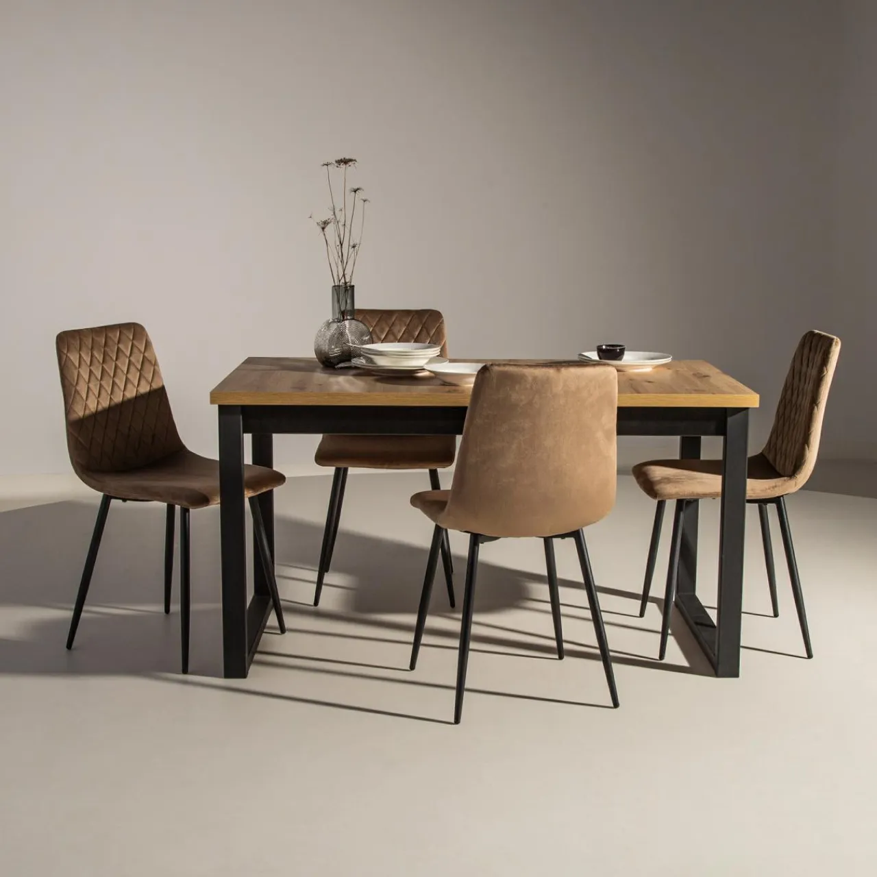 Wyrazisty design, czarna podstawa w formie płozy i blat w kolorze drewna pomogą stworzyć nowoczesny klimat podczas posiłków czy spotkań w gronie przyjaciół.
