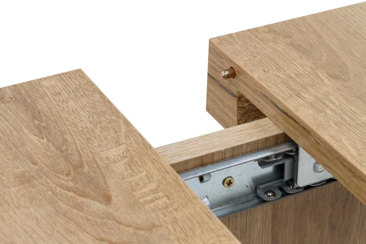 Stół MALMO został wyposażony w prowadnice kulkowe i dwie wkładki o długości 38 cm każda, które znajdują się wewnątrz konstrukcji mebla.